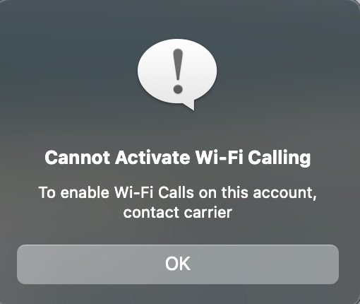 "Cannot Activate Wifi Calling On This Device" notice keeps popping up