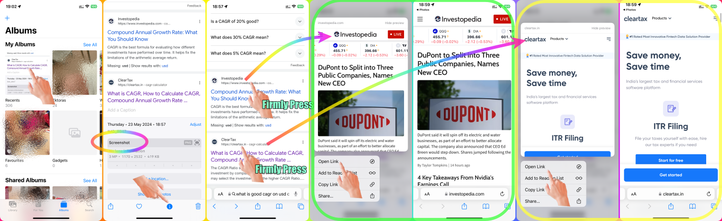 I have an iPhone 8. My question is - How to create a website link in a screenshot?
