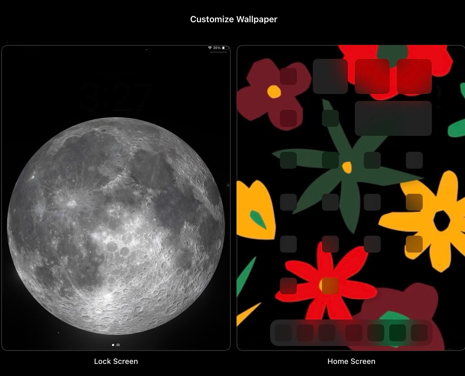 Here you can add or customise wallpaper for Lock and Home screens...