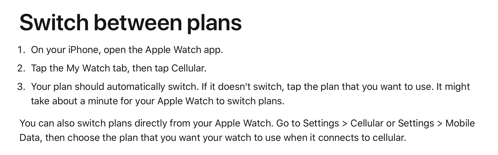 copied from: Set up cellular on Apple Watch - Apple Support