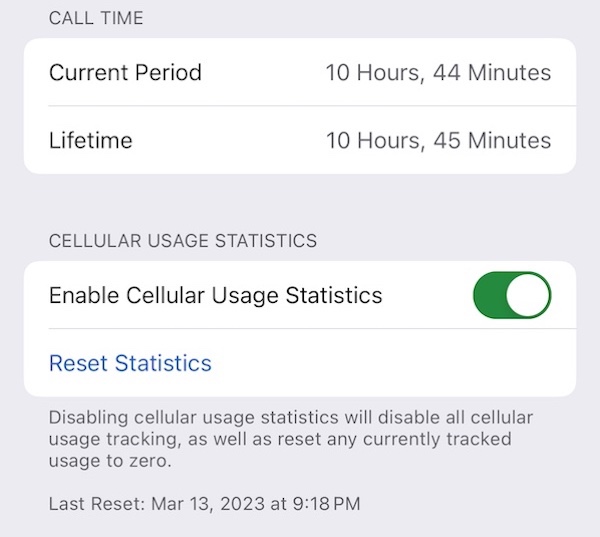 Enable Cellular Usage Statistics' must be toggled to 'on'
