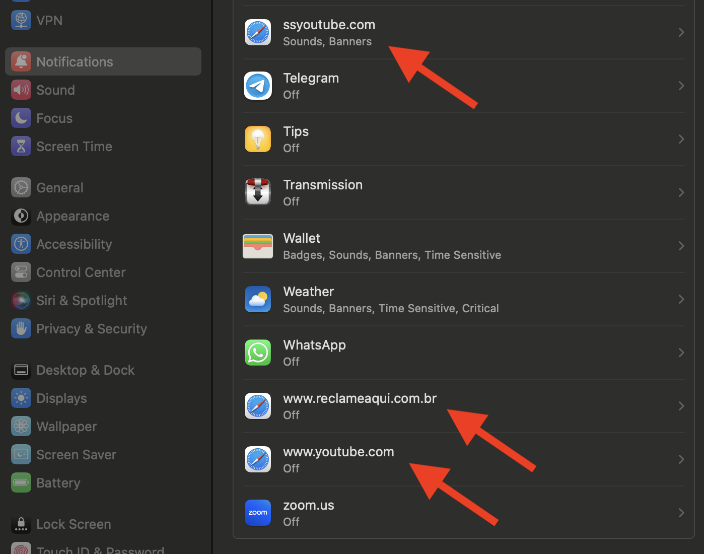 I have done some research, people recommend to go on Safari > Preferences > Websites > Notifications. But as you may see, mine is already clean, and the "website apps" still appear in my "Application Notifications" area. Thanks!