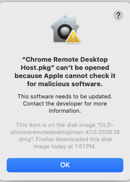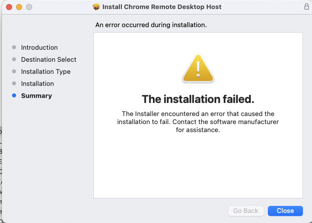 Chrome Remote Desktop failed installation on MacOS Ventura