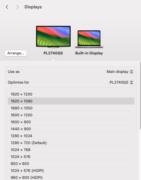 I have been using an HMDI usb-c hub to connect my screen from my mac to my iiyama monitor. It worked fine for the first six months and it had always showed the normal 2560x1440 resolution automatically. Now when i connect the HDMI cable to my mac, it automatically turns to a very small resolution on my monitor and if I go to settings i can only adjust it to a maximum of 1920x1200. The HDMI port and cable work fine with different devices such as a projector so i do not understand what is the problem. Also when i try to mix the display settings (which screen mirrors which etc) it never goes back to the normal resolution and none of the options work.