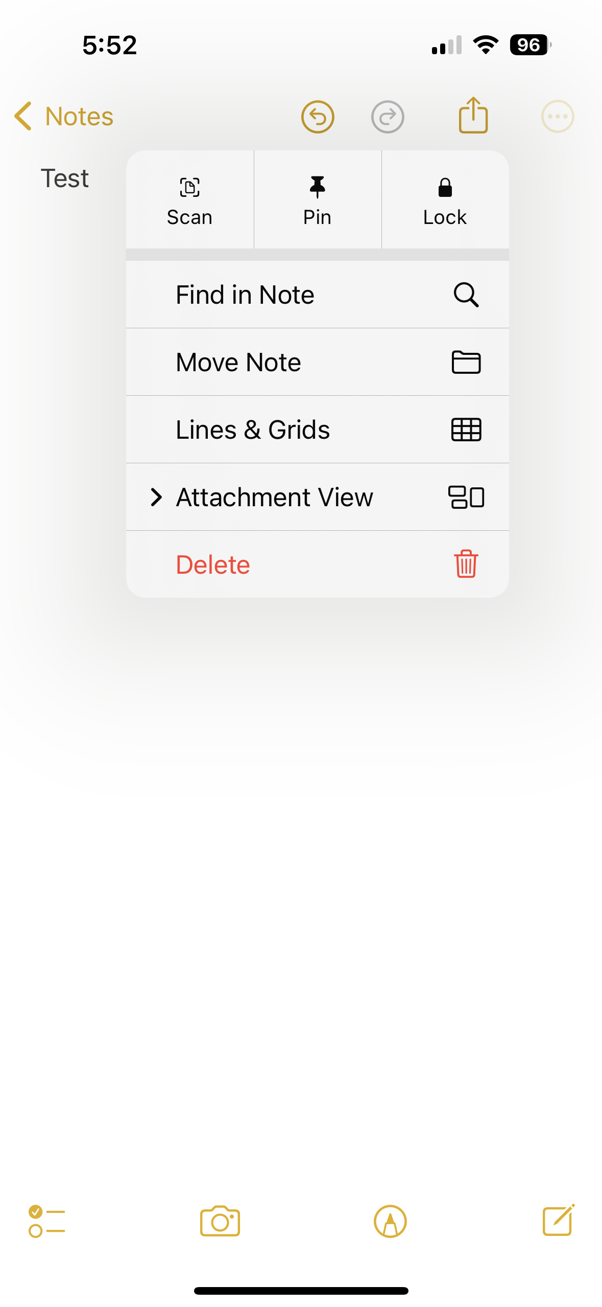 Icons in the Notes app