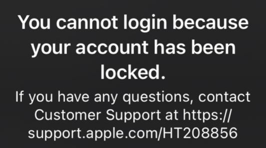 - "This Apple ID has been locked for security reasons"