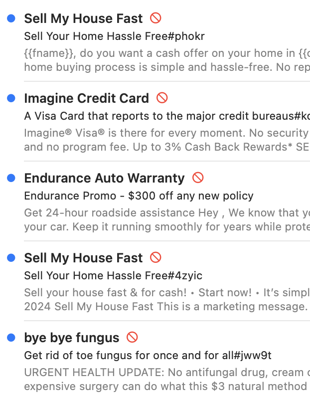 " I've blocked many addresses and most coming in now are the ones I've previously blocked. "