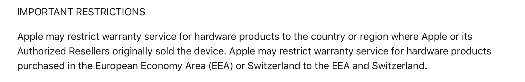 For Mac computers, the free one-year warranty used to be internationally valid but, as of March 2023, service may be limited to the country where the device was purchased: