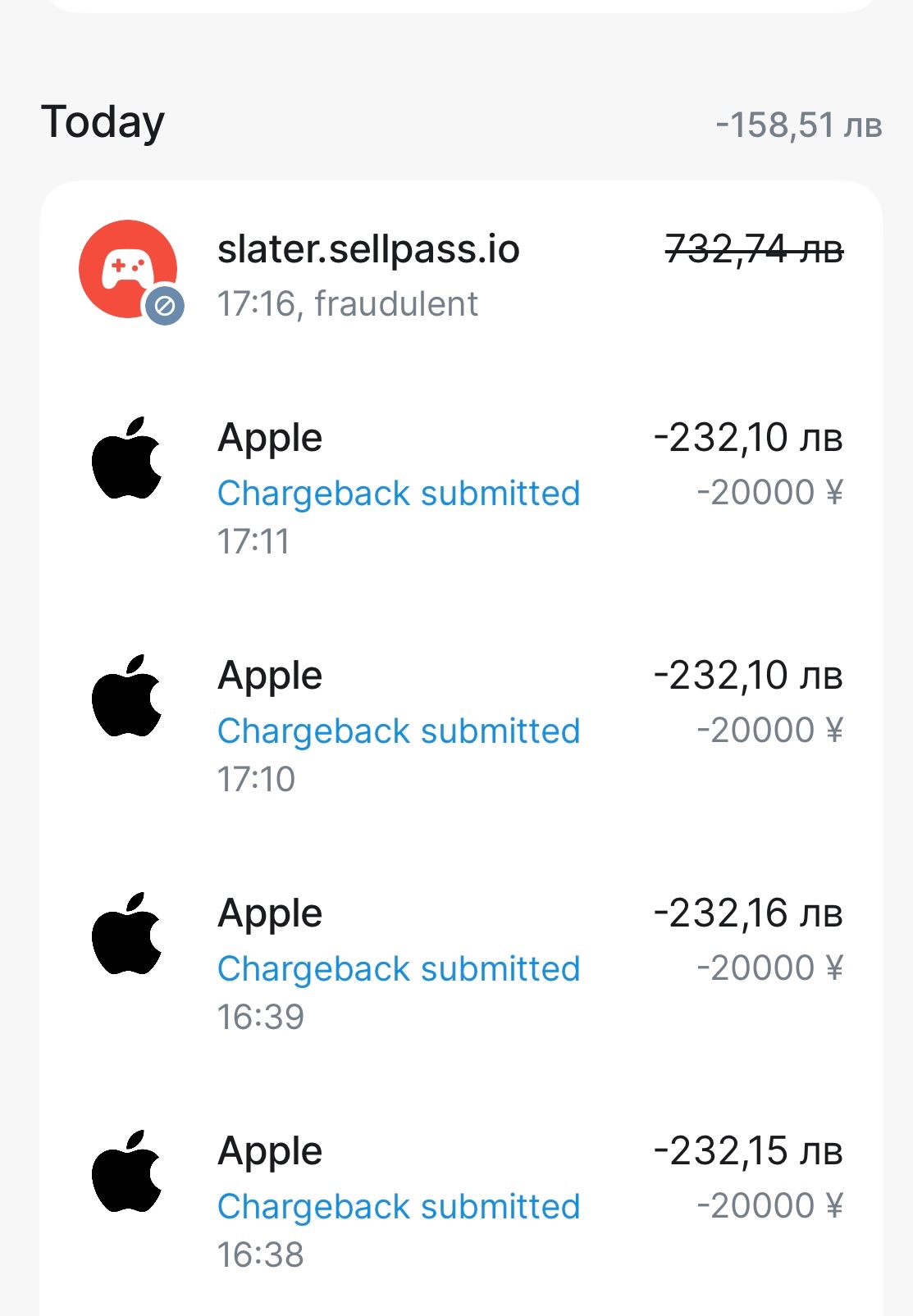 Hello! Have a big problem. This afternoon from Revolut are taken 4 times money from my account from Apple. We frozen the card but wondering how is possible and what to do ? ! I can send screenshots.