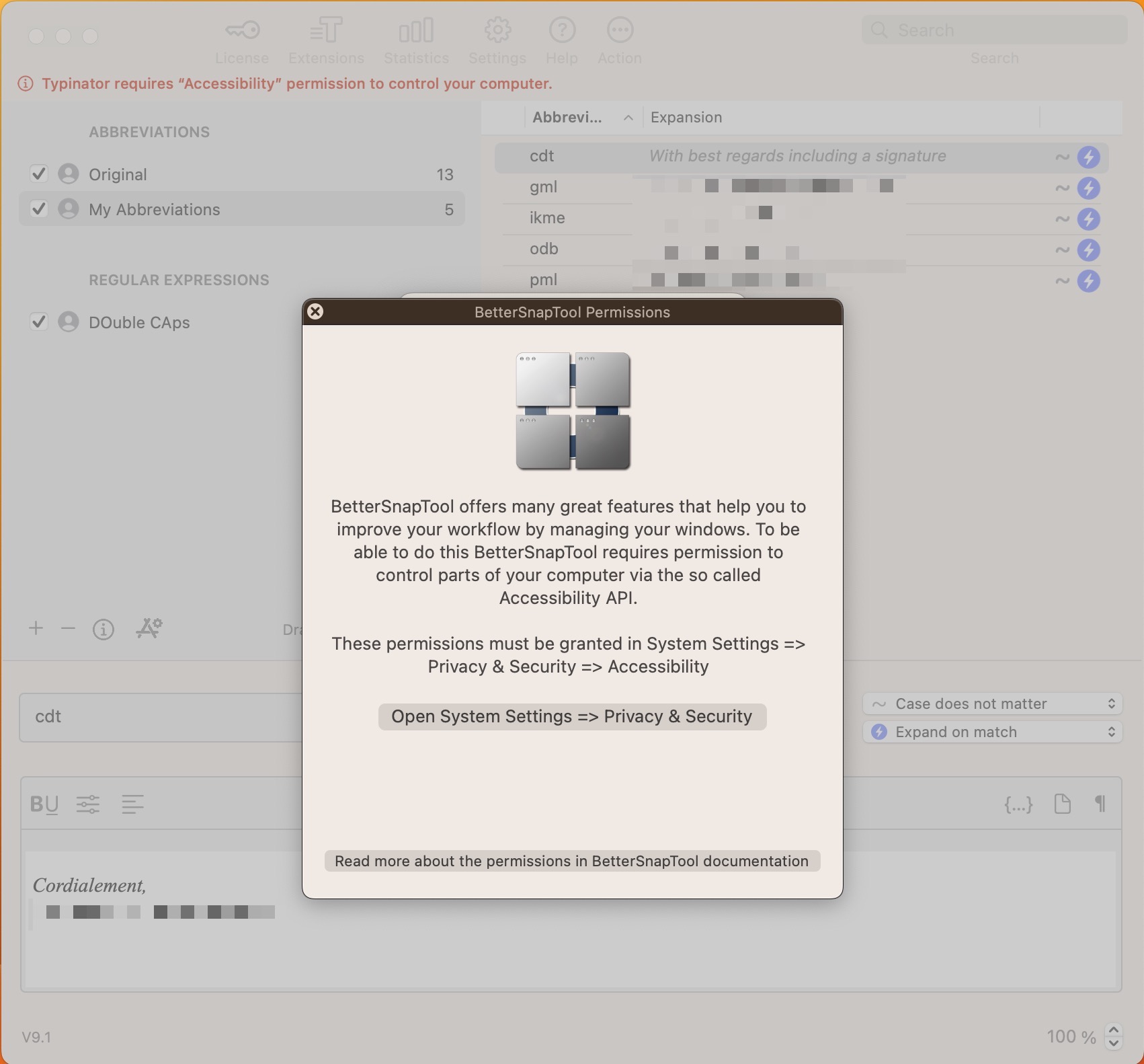 It can also happen if the code signature of an app changes for whatever reason (e.g. buggy update, broken disk, some other software that „accidentally“ breaks the signature). At least for BetterSnapTool the code signature hasn’t changed through updates.