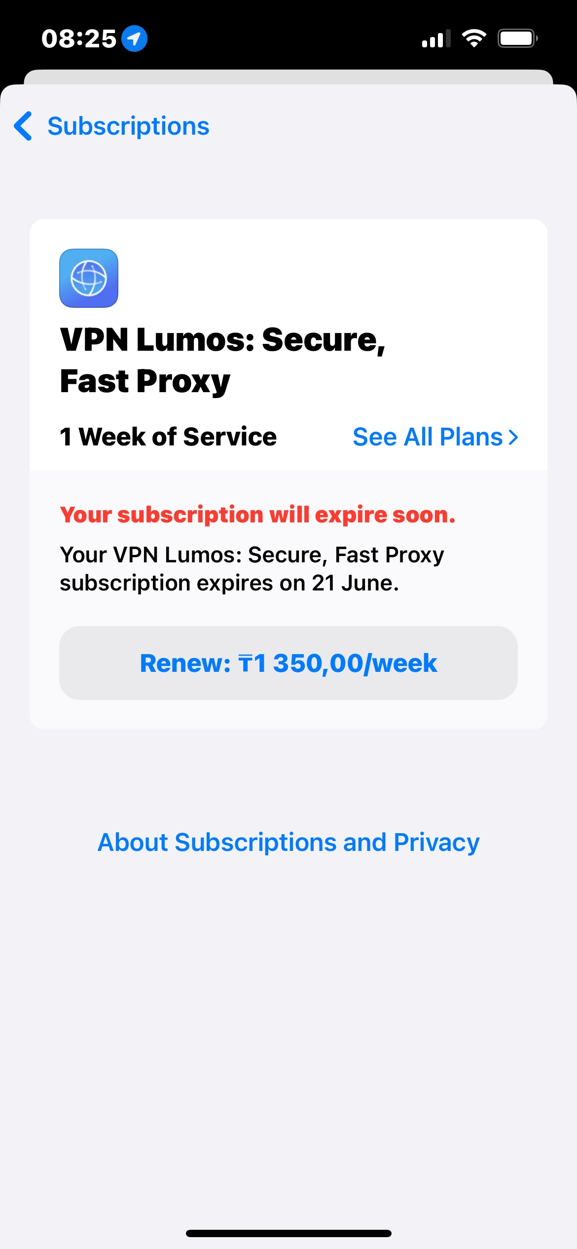 I want to cancel my subscription for VPN Lumos, however, in App Store there is no cancel subscription button