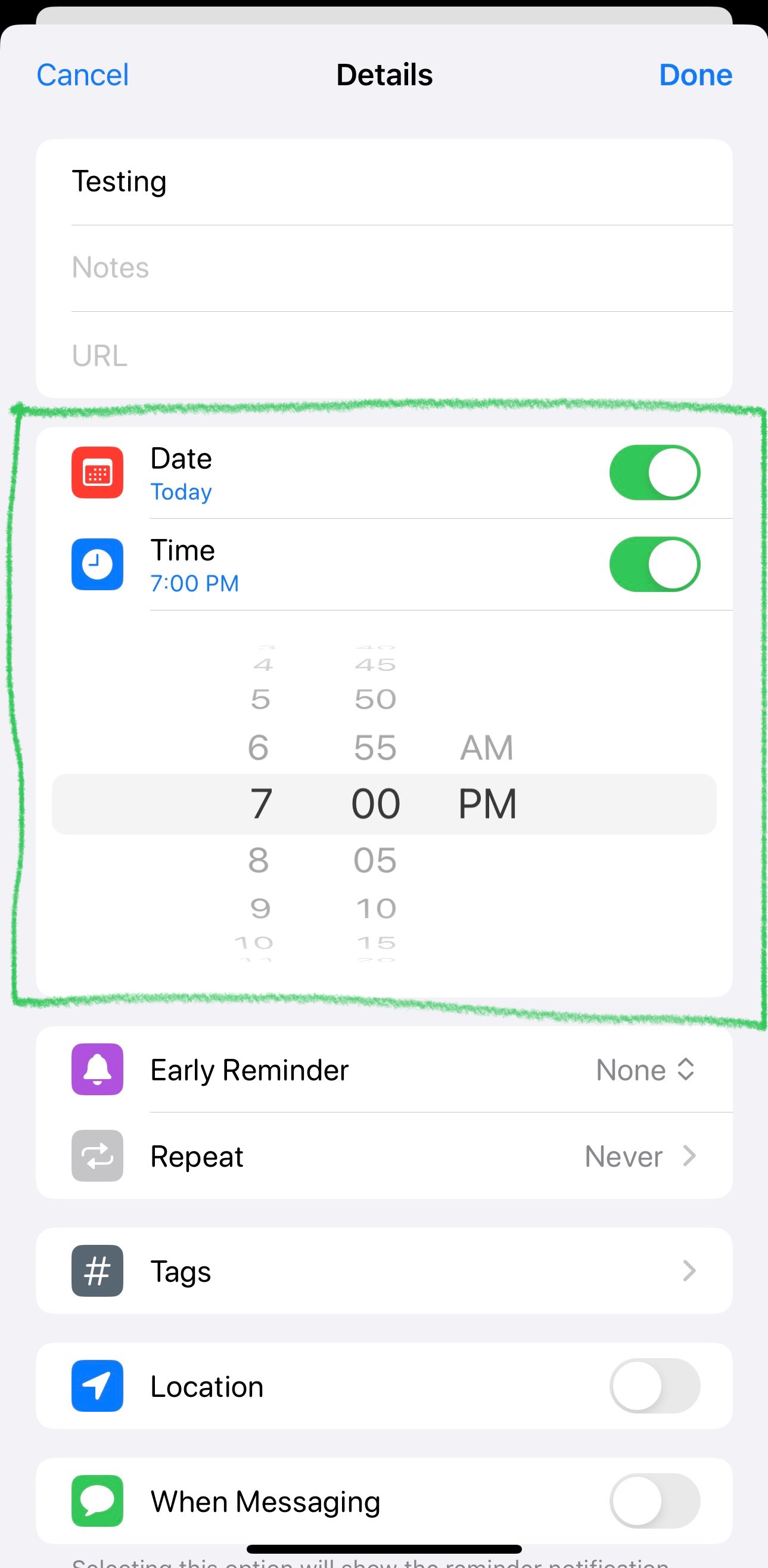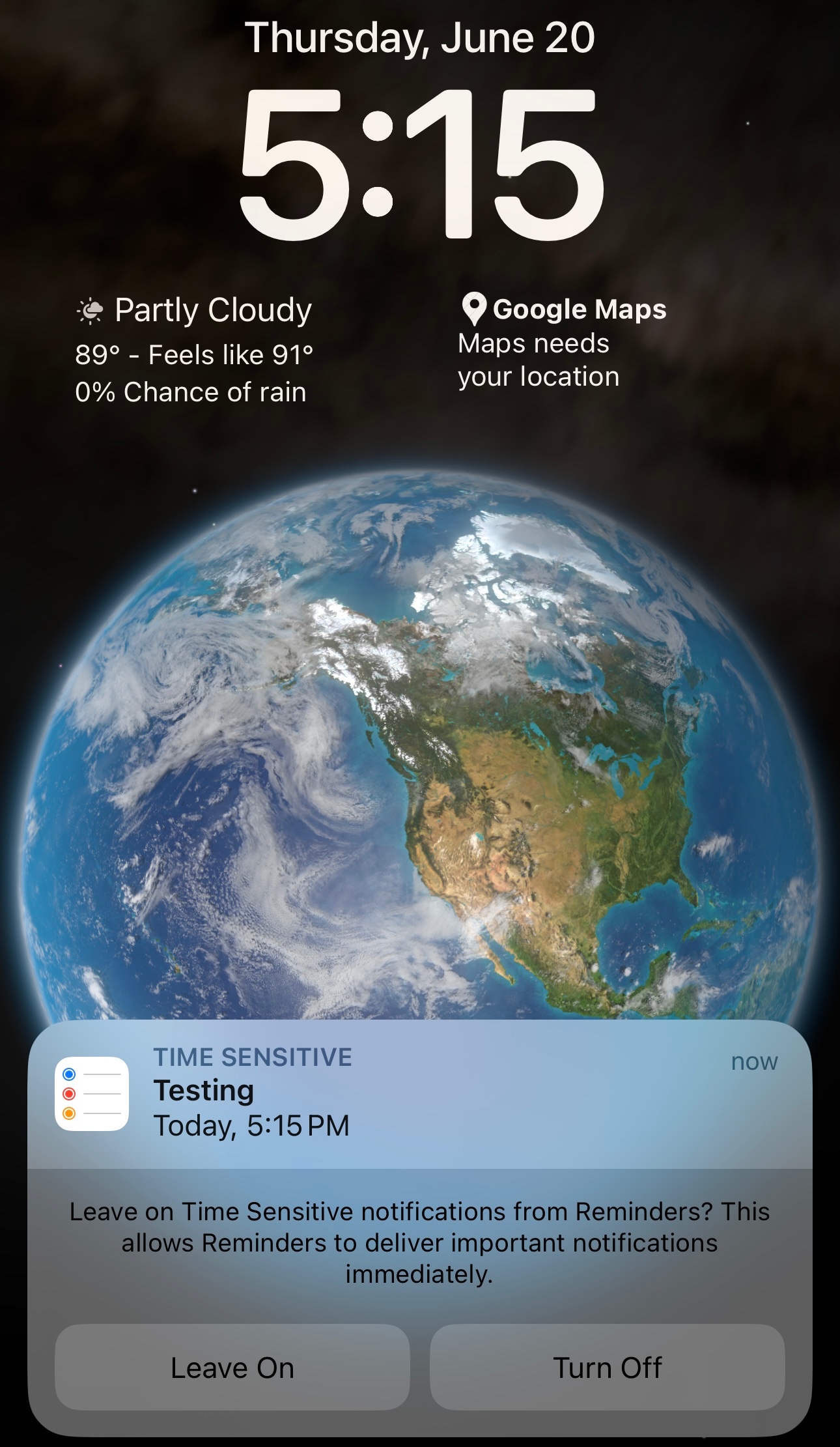 Set a test reminder in the app to reminder me at 5:15PM. This is before:
