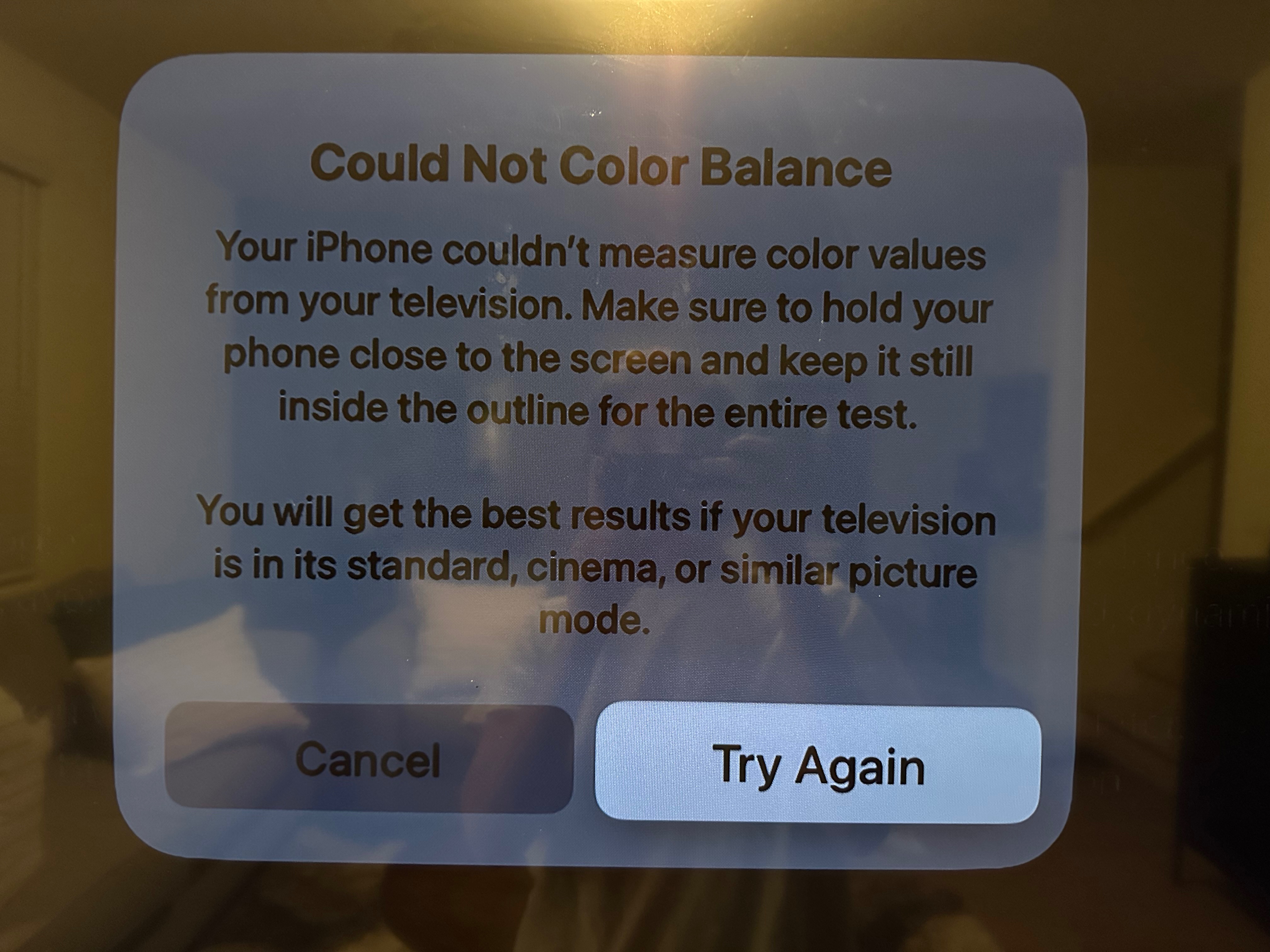 I didn’t find it easy to get it started at initial attempt either, but it does work, if you hold the iPhone just right. [I used cotton ‘art’ gloves to hold my fingertips steady against the screen at a fixed position, without causing fingerprints on the screen.] Calibrate video or audio - Apple Support