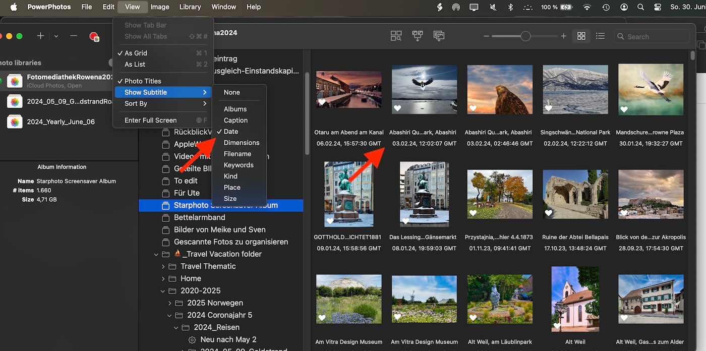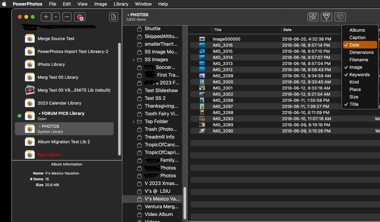 Right now if I show all of the photos in an album it shows the file name. How can I get it to also show the date/time the photos were taken. I know I can do cmd-I to show the date/time of an individual photo, but I want to see the date/time of all the photos where the file name appears.