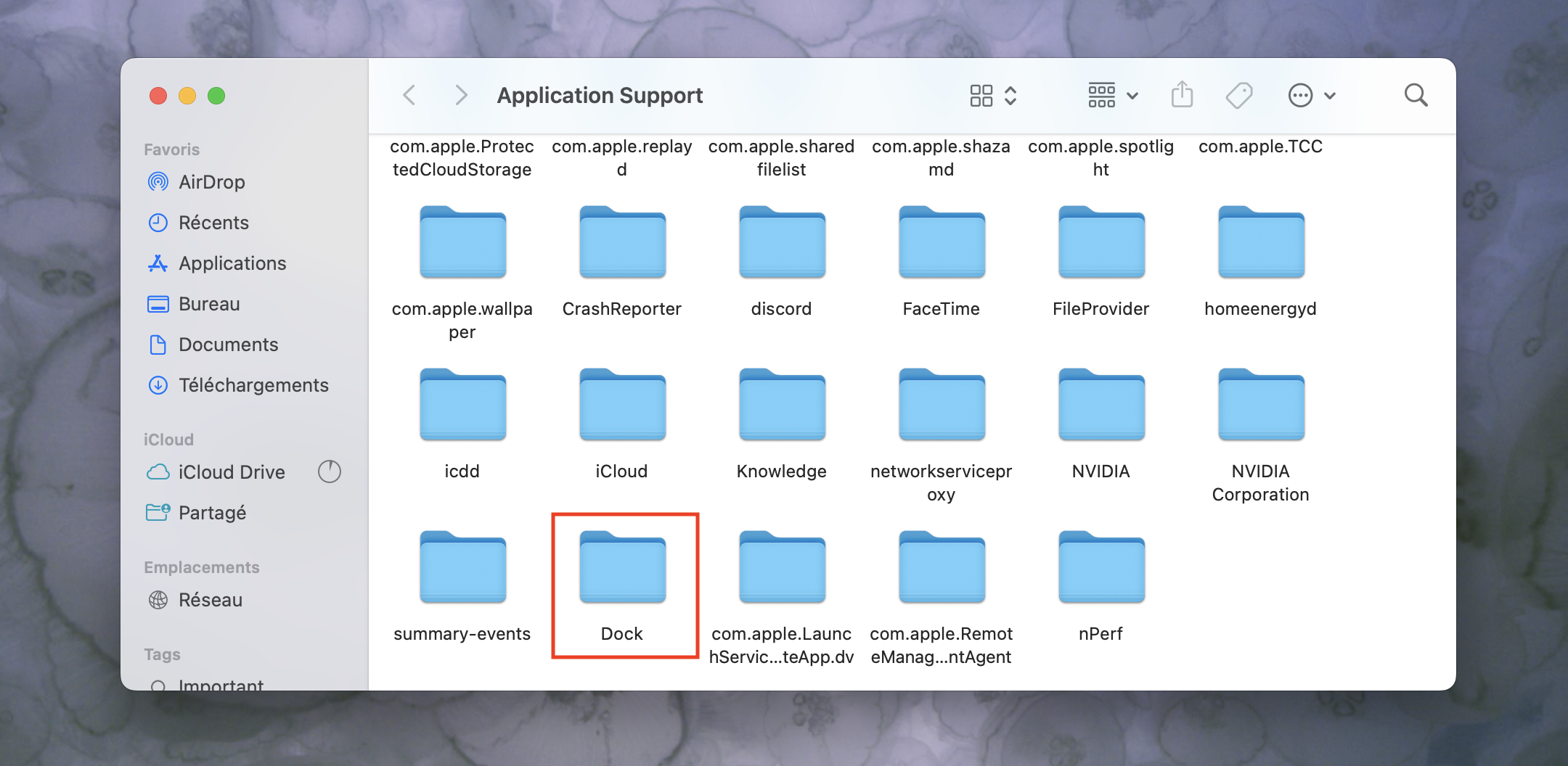• Dans le dossier "Application Support", créez un dossier nommé "Dock".