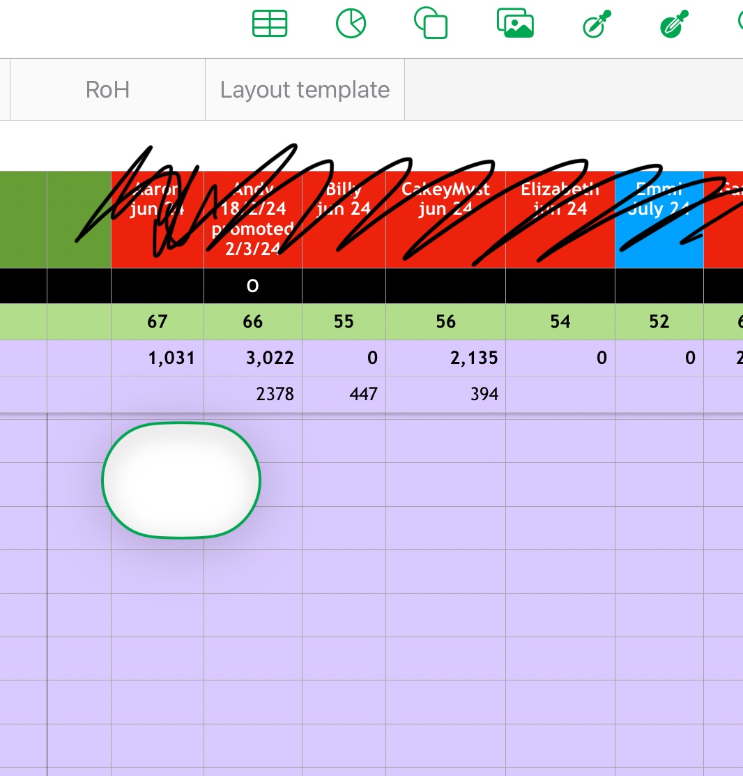 Try restarting your device - worked for me. Spreadsheet came back intact without the green ovals.