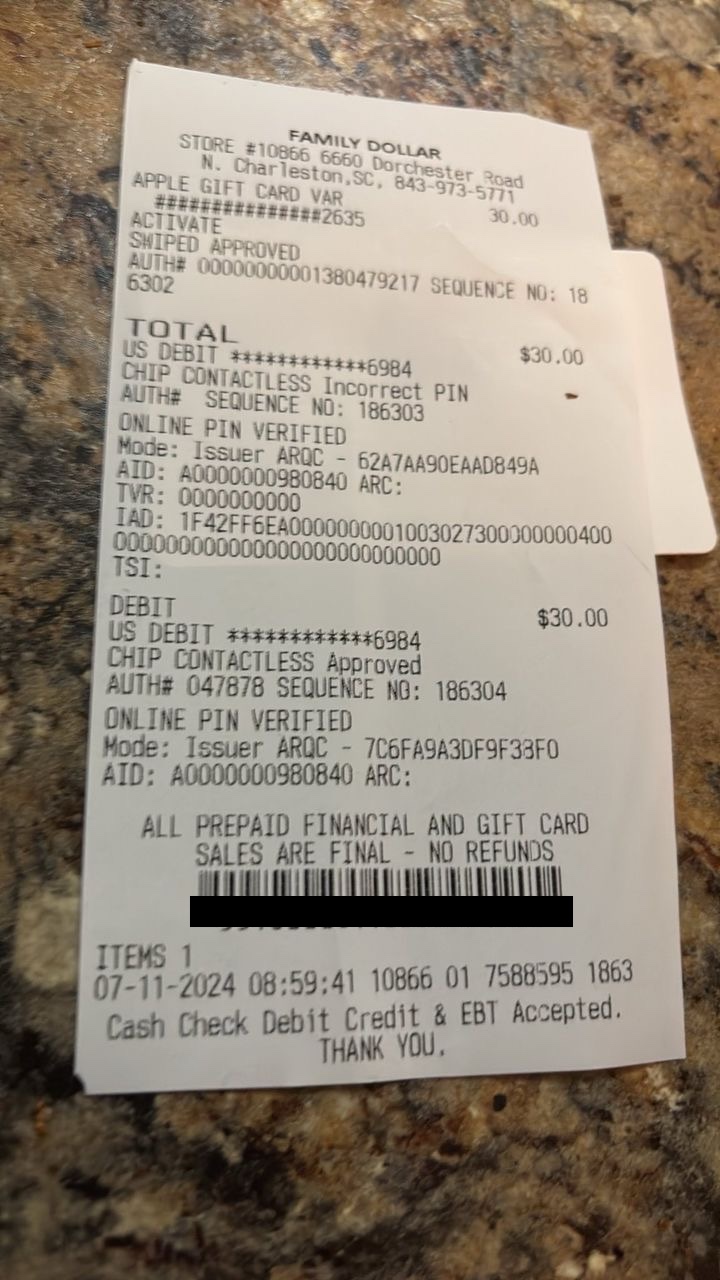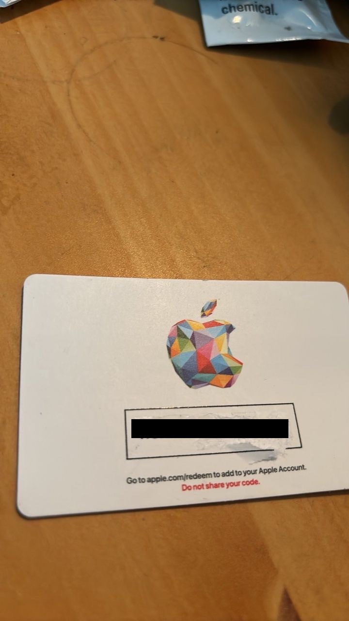 My apple gift card was mistakenly scratched off and I need to get back the remaking code