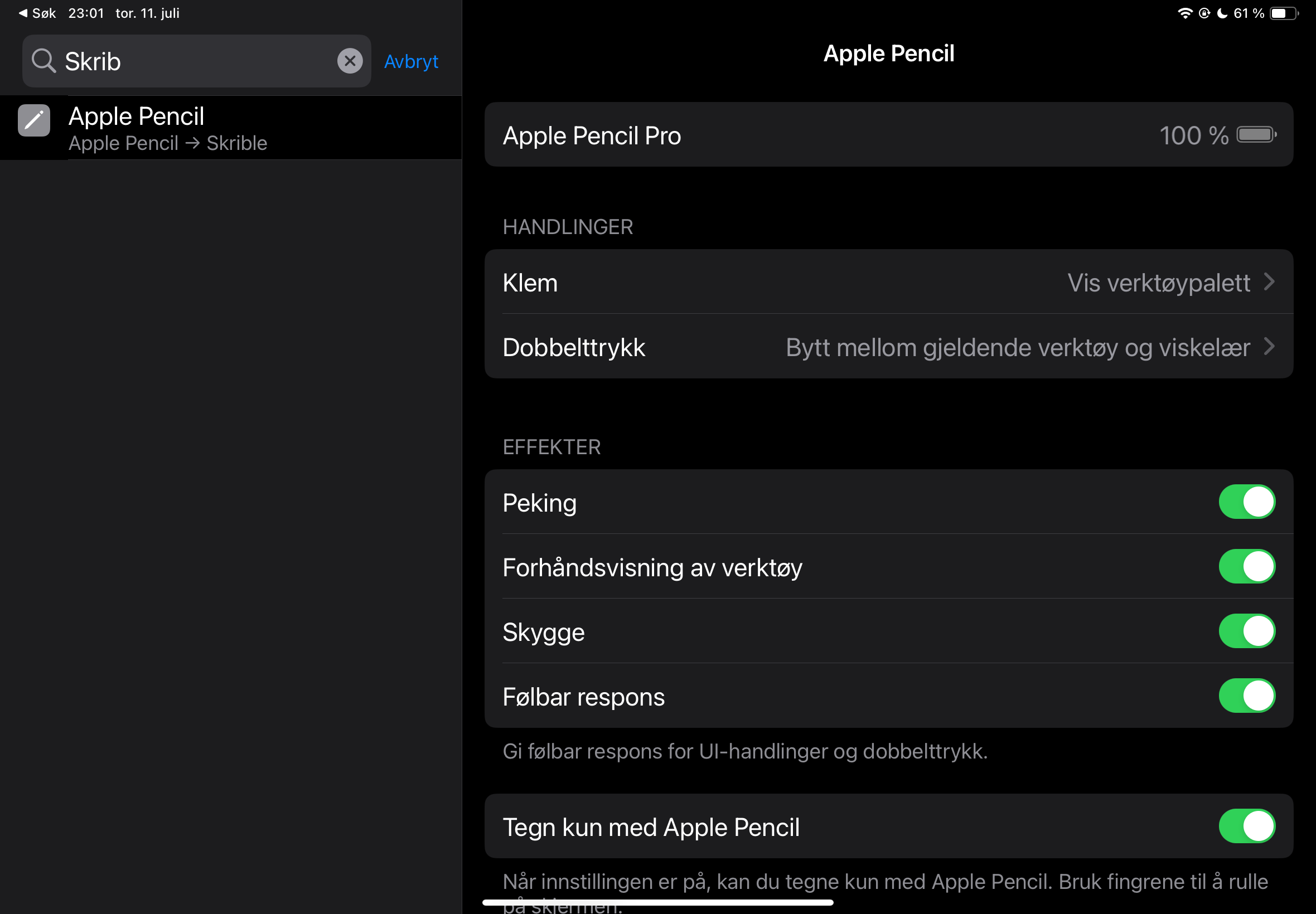 The Scribble mode does not work on my iPad air (2024)I have tried a forced restart aswell as checked that everything is updated. When i click on the Apple Pencil page in settings i do not Even have an option to turn on or off scribble. The scribble mode only comes up when i search for the scribble mode, but again, im not able to turn anything on or off or Get to the scribble option. How do i Get the scribble mode? And then turn it on?