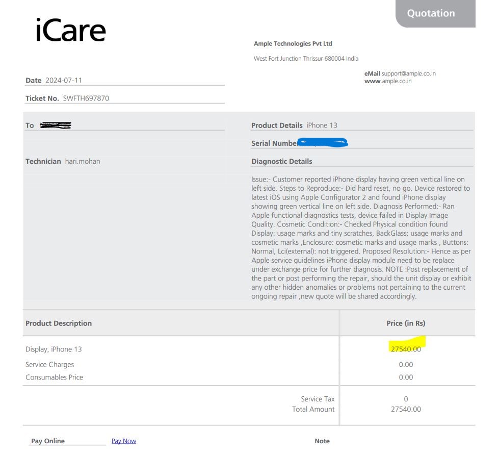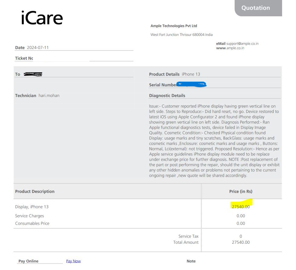 I submitted the phone apple i care and as per the diagnostic report it is clearly