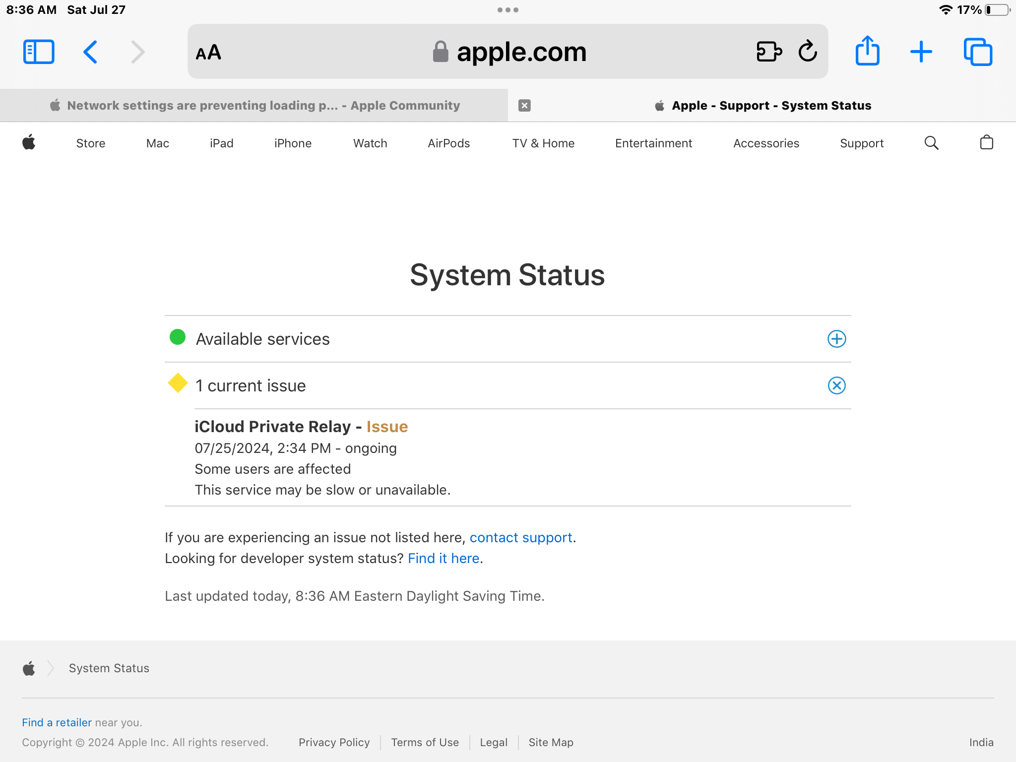 Also a concurrent issue is effecting online experience, related to Private Relay. both are supes annoying