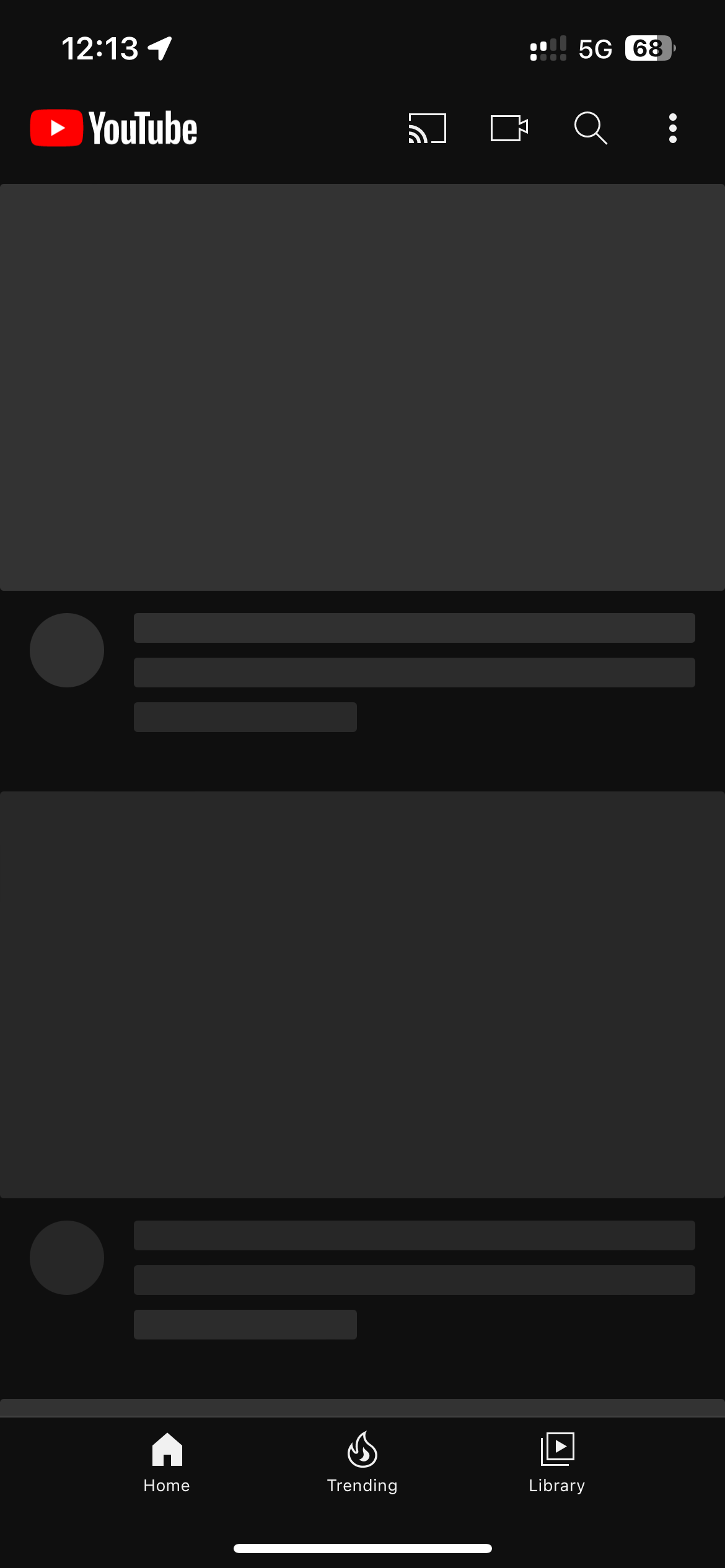 A few days ago YouTube simply stopped loading on my phone. I open the app to, rather than thumbnails, perpetually loading gray boxes. I have since uninstalled and reinstalled the app a few times, so it is now stuck on the welcome to YouTube screen, following sign in. If I bypass sign in with use as guest it’s back to the loading grey boxes.