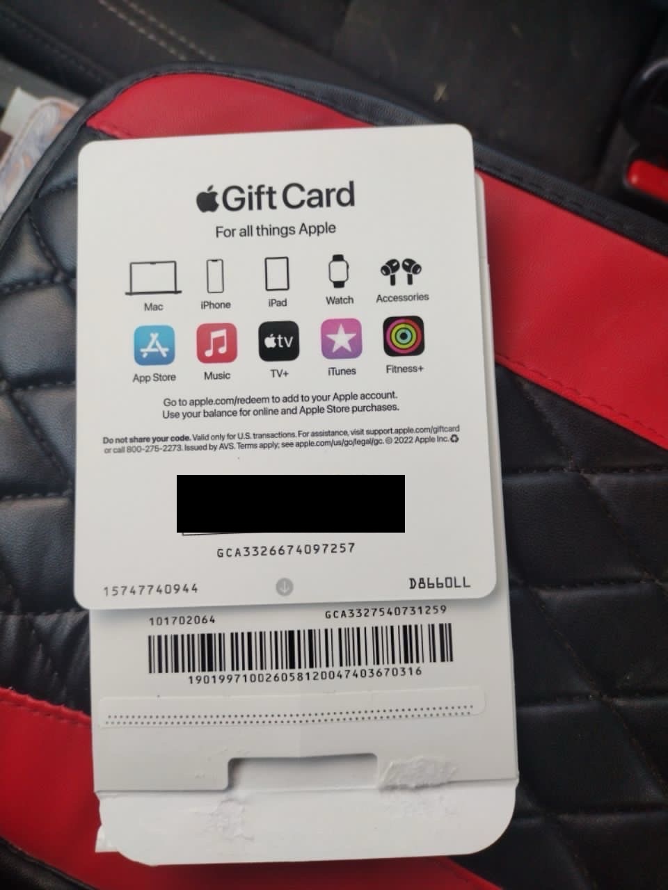 I brought 500$ apple gift card lost 2 code in card I can I see my code completely