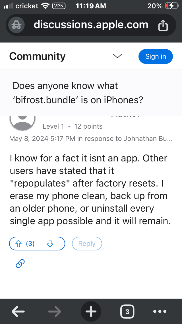 I’ve reset my phone, my location, my network, and this “app” always shows back up in my privacy/location settings? However, I will note, it doesn’t show up on my newer iPhones? I have a s 2nd gen SE and the old 6s, which do not seem to be protected from it. The newer 13 Pro Max, on the exact same ID, doesn’t show this, at all? I’ve also noticed, if I reset location, it goes away, only temporarily? I’ve installed and uninstalled all my typical reputable apps, and none of these seem to be the problem. I was wondering, if the “Safe Crypto Curves” setting in the Safari in the “Developers WebKit Feature Settings”, may be causing this problem? There are no apps in the App Store I’ve ever downloaded contains the word Bitfrost. If there is anyone with further information, I’d greatly appreciate hearing from you. Note* I do some app developing on my computer, but I do not do anything on my phone, with the developers features?