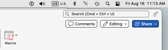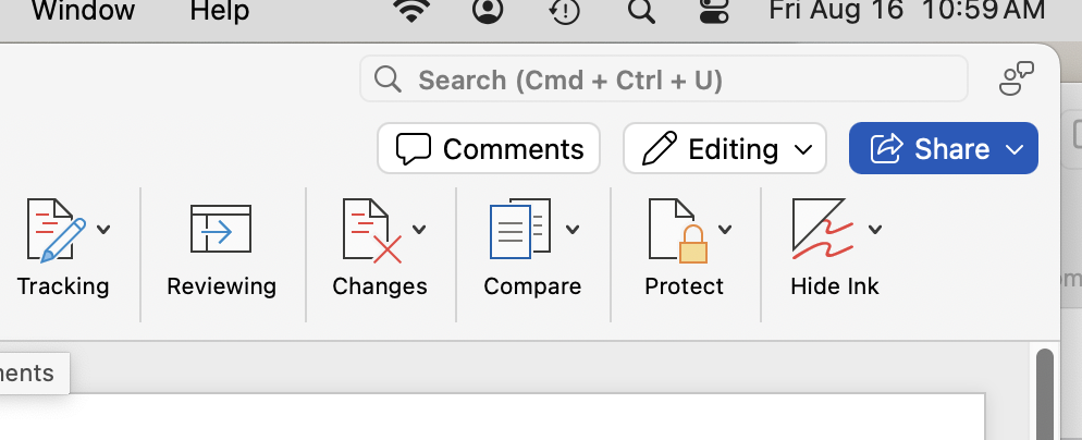 Thanks. My system is Sonora 14.6.1. My Word is version 16.88. I've been updating automatically. No, I'm not using full screen mode. Help says: