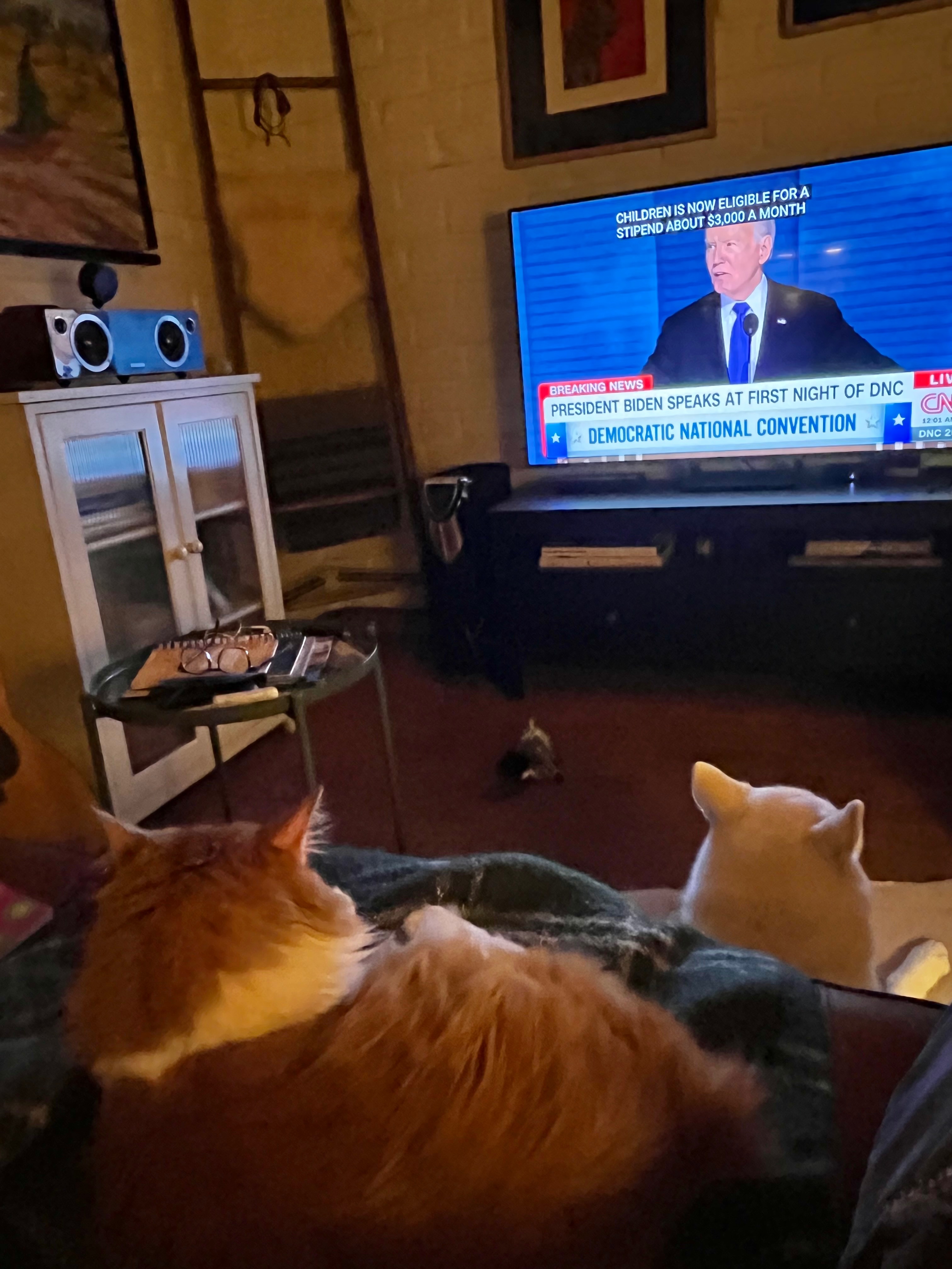 And the detail in the cat's fur is still noticeably less than in yours. It's obvious that your phone is capable of very fine detail. Again, it has to do with what the camera software was emphasizing. The software identified the cat as more important than the television (cats are always more important!) and "decided" that the room was too dark.