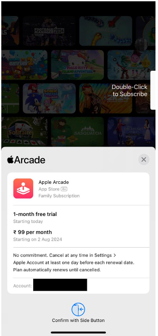 When you clicked the link for the free trial, were you taken to the developers web site? In this case the subscription/free trial is being directly billed to you from the developer without any involvement from Apple. The only subscriptions that are managed by Apple are the ones you make with an in-app purchase inside of the app, not on a website. The in-app purchase will show if the free trial is available along with the subscription price and start date before you double click the side button to authorize the transaction.