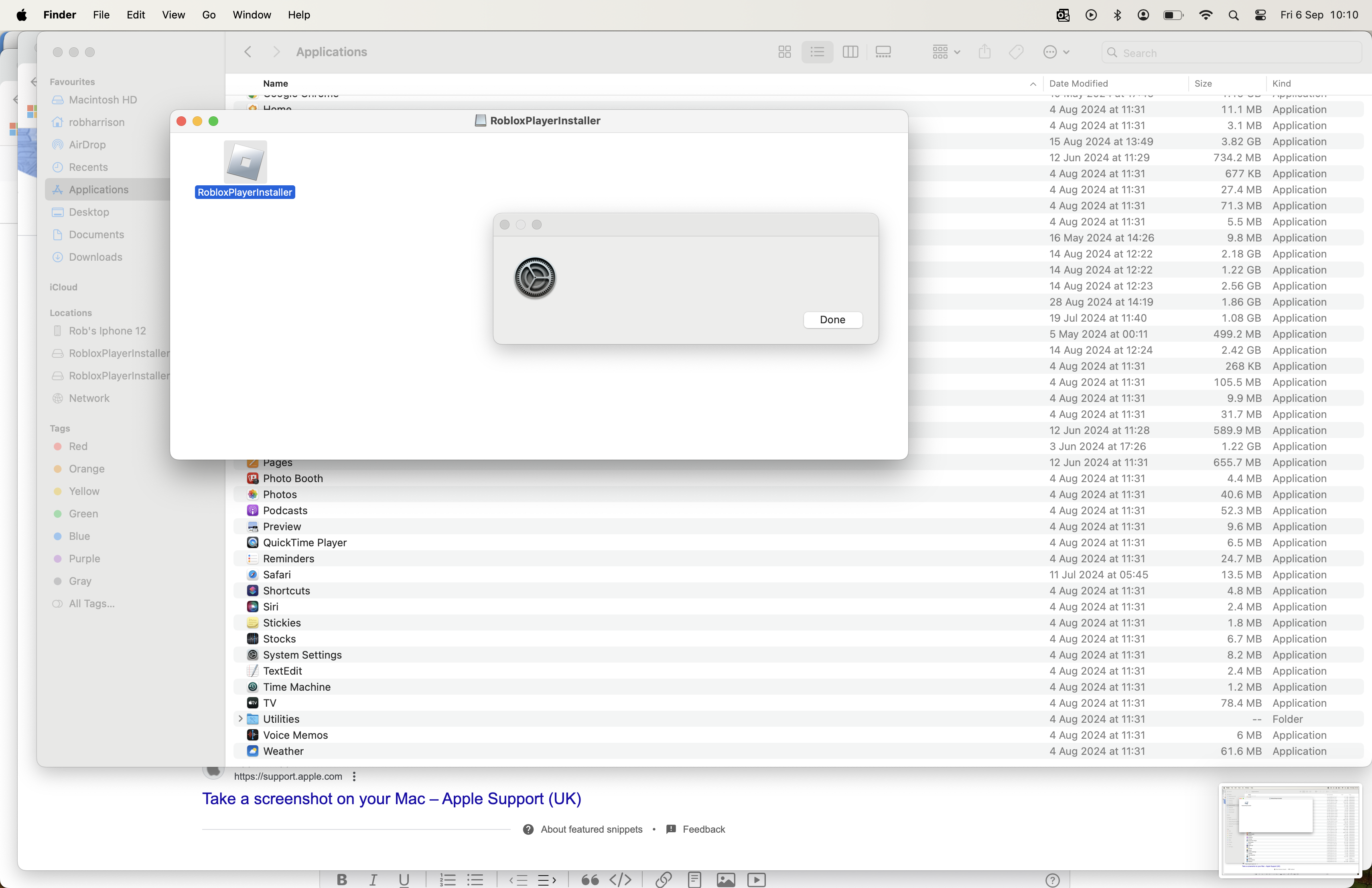 I'm trying to install Roblox on my MacBook Air. I can download the file but when I click on the installer nothing happens, I just get a new window which is blank, except for a "Done" Button. I click on this, it closes the window but nothing happens and I still can't use Roblox.