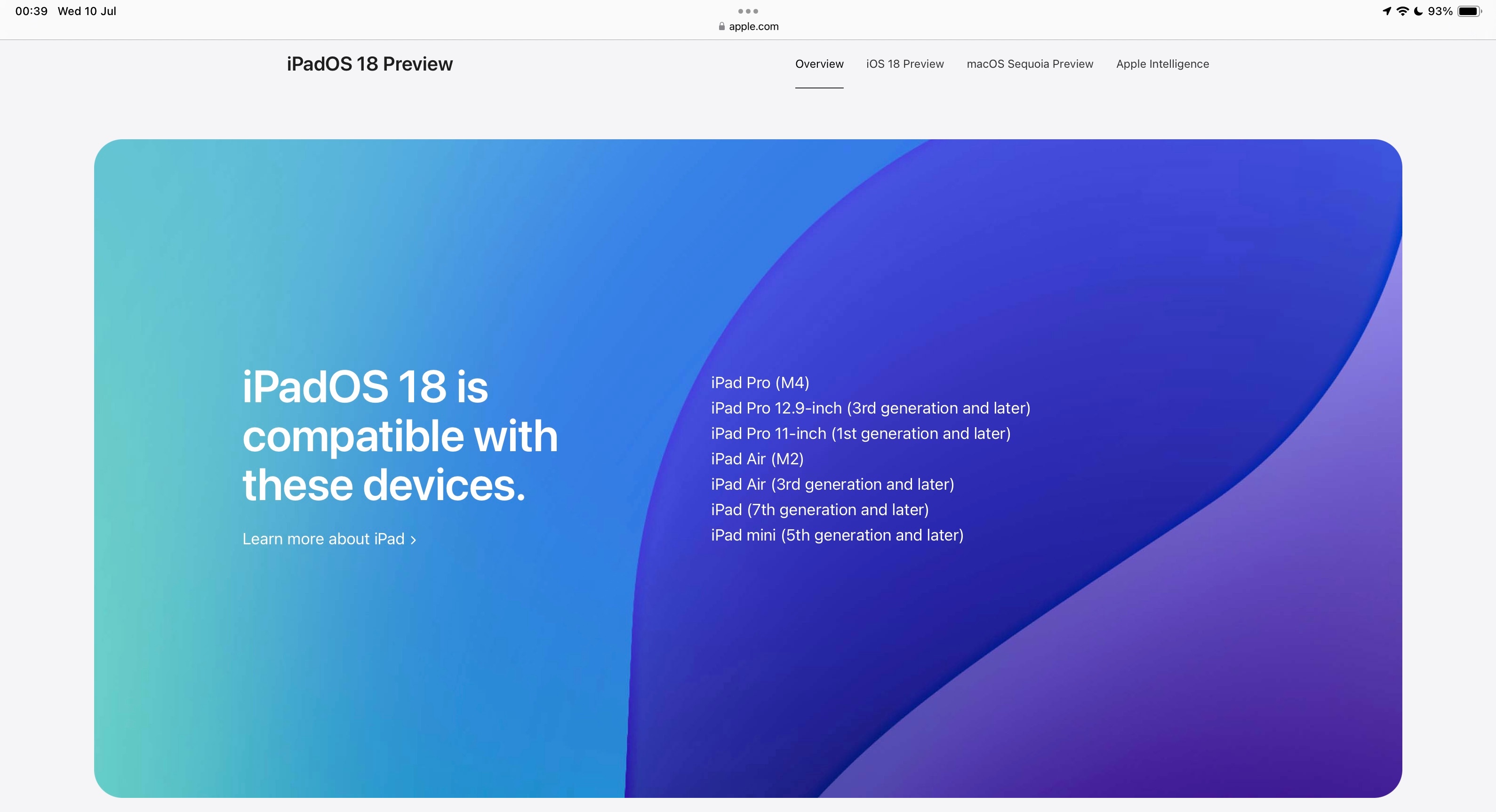 iPadOS 18, due for imminent release, is supported by these models of iPad: