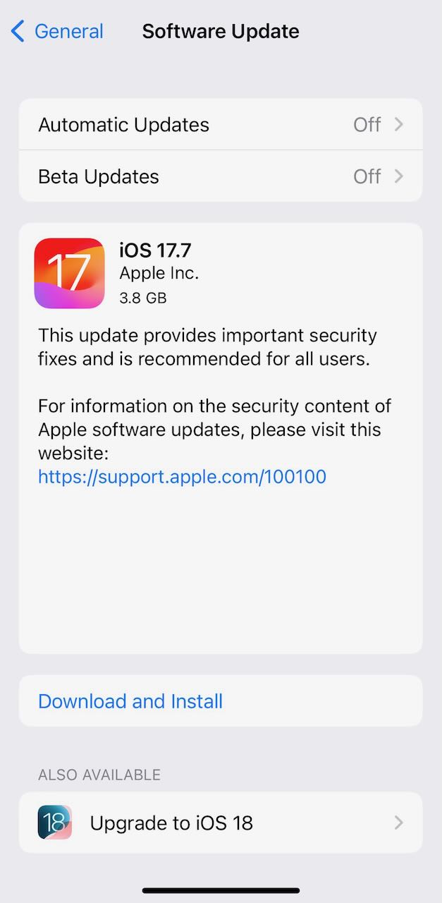 iOS 17.7 update in iphone 13 any problems