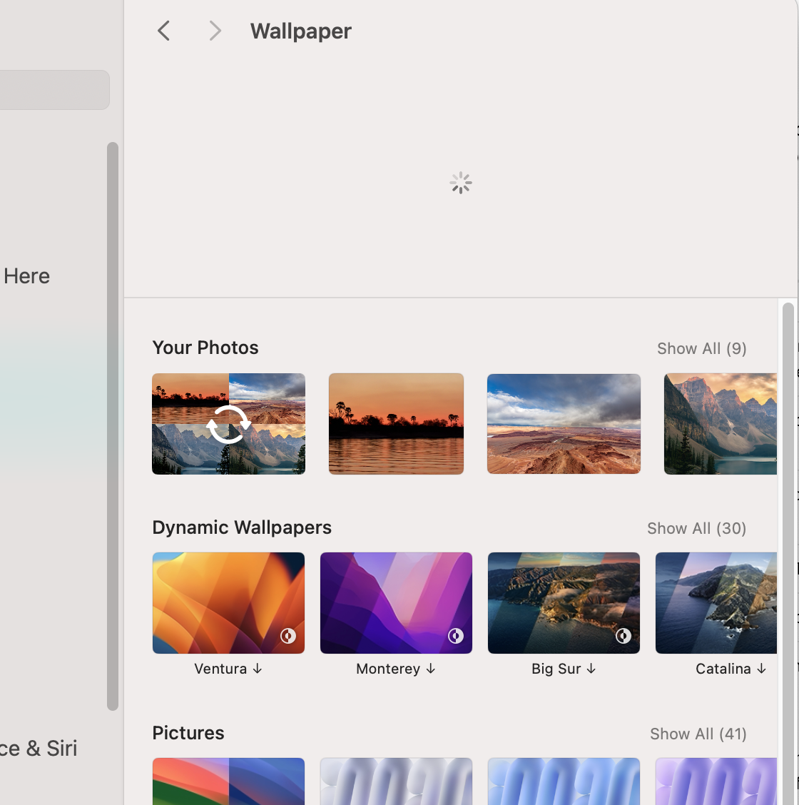 Also, at this time, if I am not using the smaller folder, I found that NONE of the provided files for wallpaper, that Apple provides will work. If I try to change to one of those, it just fills in a color of its own choosing. I mean WOW, lol, eventually it will default back to the sequoia trees, but it cannot use any of the provided pics, so it truly has a really stubborn bug.