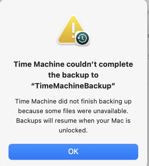 I upgraded my macbookair M2 to 15.1. It is not helping. I get the error "time machine did not finish backing up because some files were unavailable. Backups will resume when your mac is unlocked".