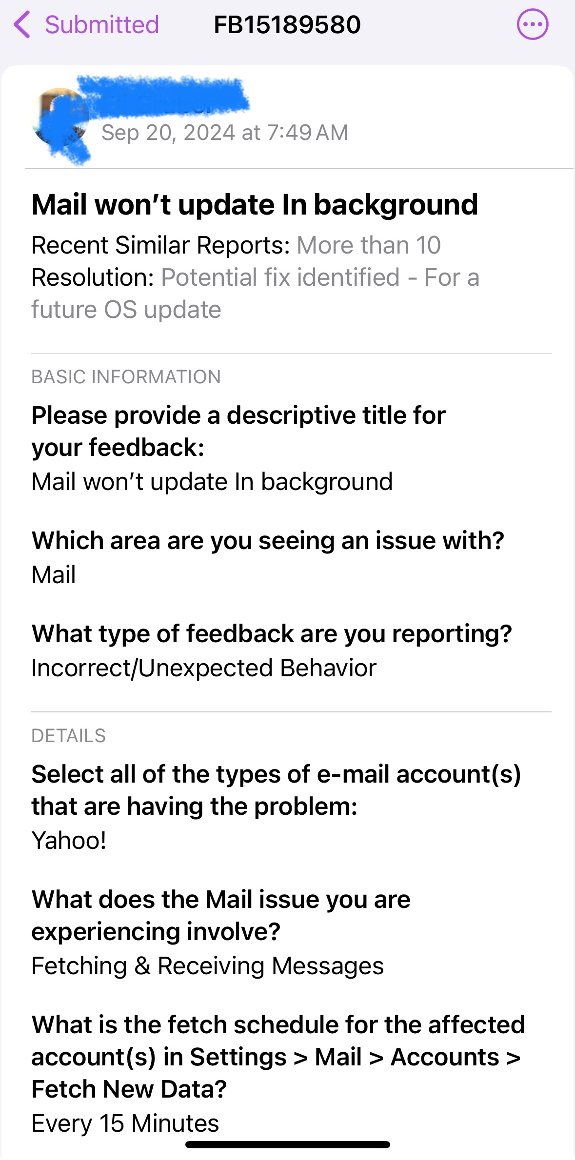 In IOS 18, my new yahoo mails don’t download until I open the apple mail app. The badge will say I have a number of new emails, but they don’t start downloading until I access the inbox. This worked until the upgrade and all I’m still set to Fetch every 15 minutes (yahoo doesn’t allow push) like before.