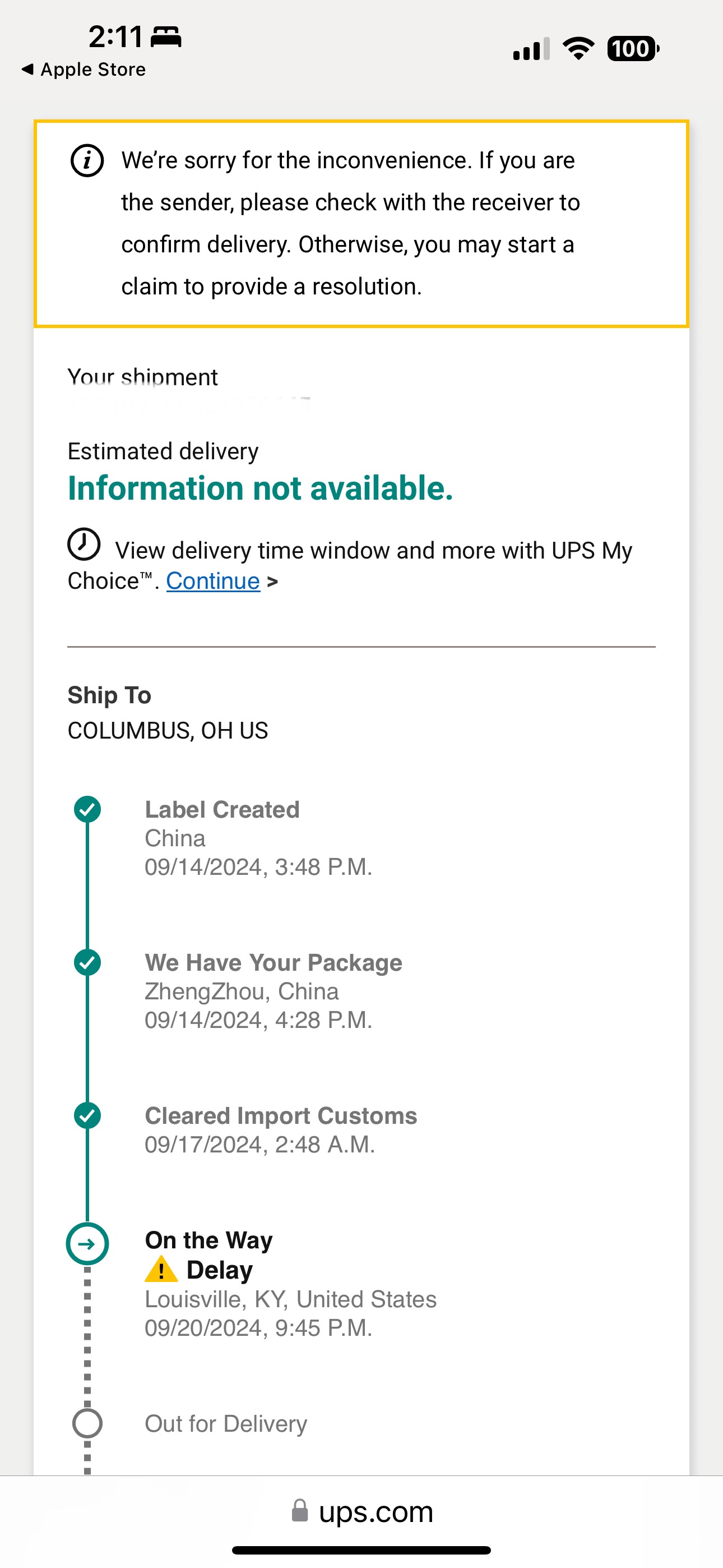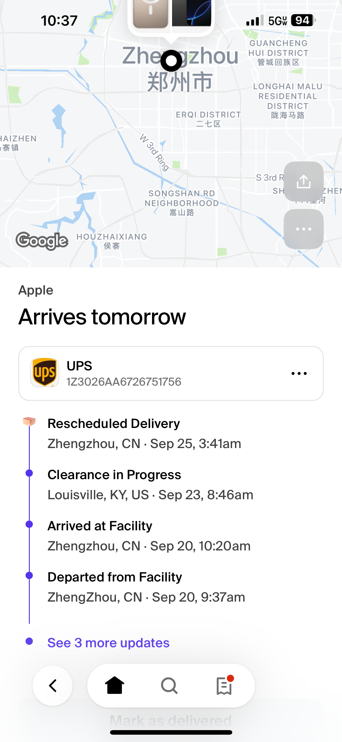 I ordered my iphone 16 pro max at 5AM PDT on september 13, initially it was supposed to arrive today, friday september 20. On "my orders", it still says that it´s friday september 20, but when I track it in UPS it says it will arrive on monday. Is there any way I can know for sure when it will arrive? Also, the package is currently 5 hours away from my location.