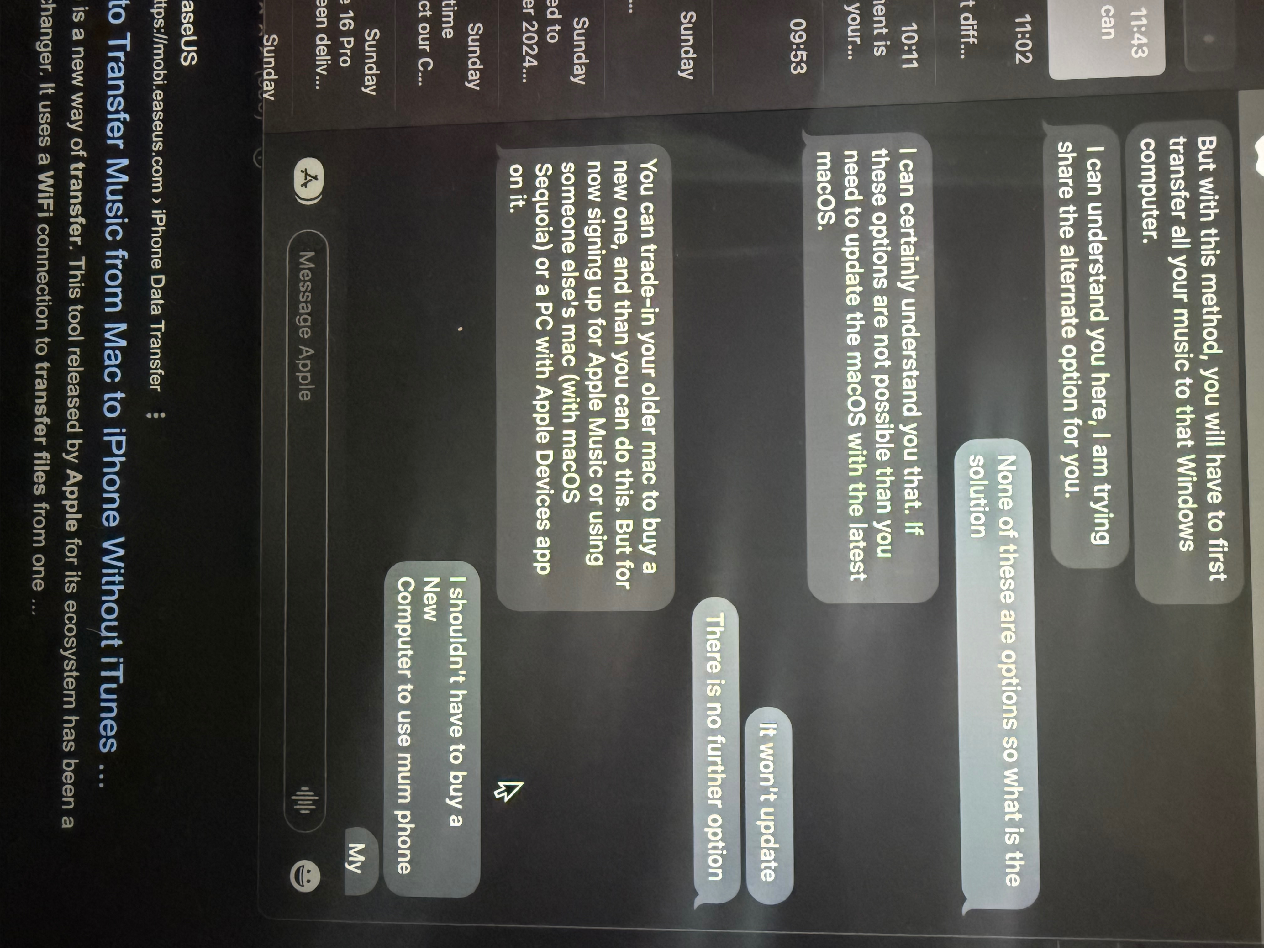 will update my progress here after the process completes -- if that works or doesn't work -- then I can worry about how to run a BACKUP on the iPhone 16 with no compatible hardware or macOS (until Apple fixes the issue)