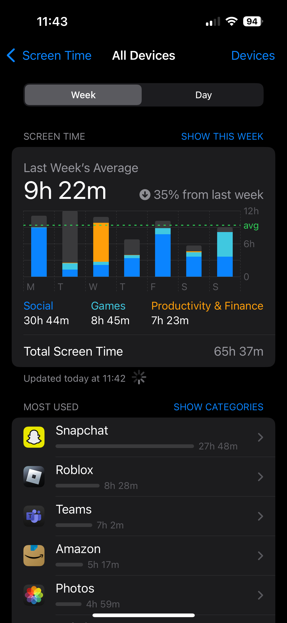 I just updated to iOS 18 on my iPhone 15, I went in to check my screen time for the week and noticed it absolutely SKYROCKETED. My daily average is maybe about 3 and a half hours a day if not less. Before I updated I seen my screen time daily average was 3 hours and 2 minutes I think. I updated and it skyrocketed to maybe 13 hours, 11 hours, even my iPad went to 24 hours one of the days.