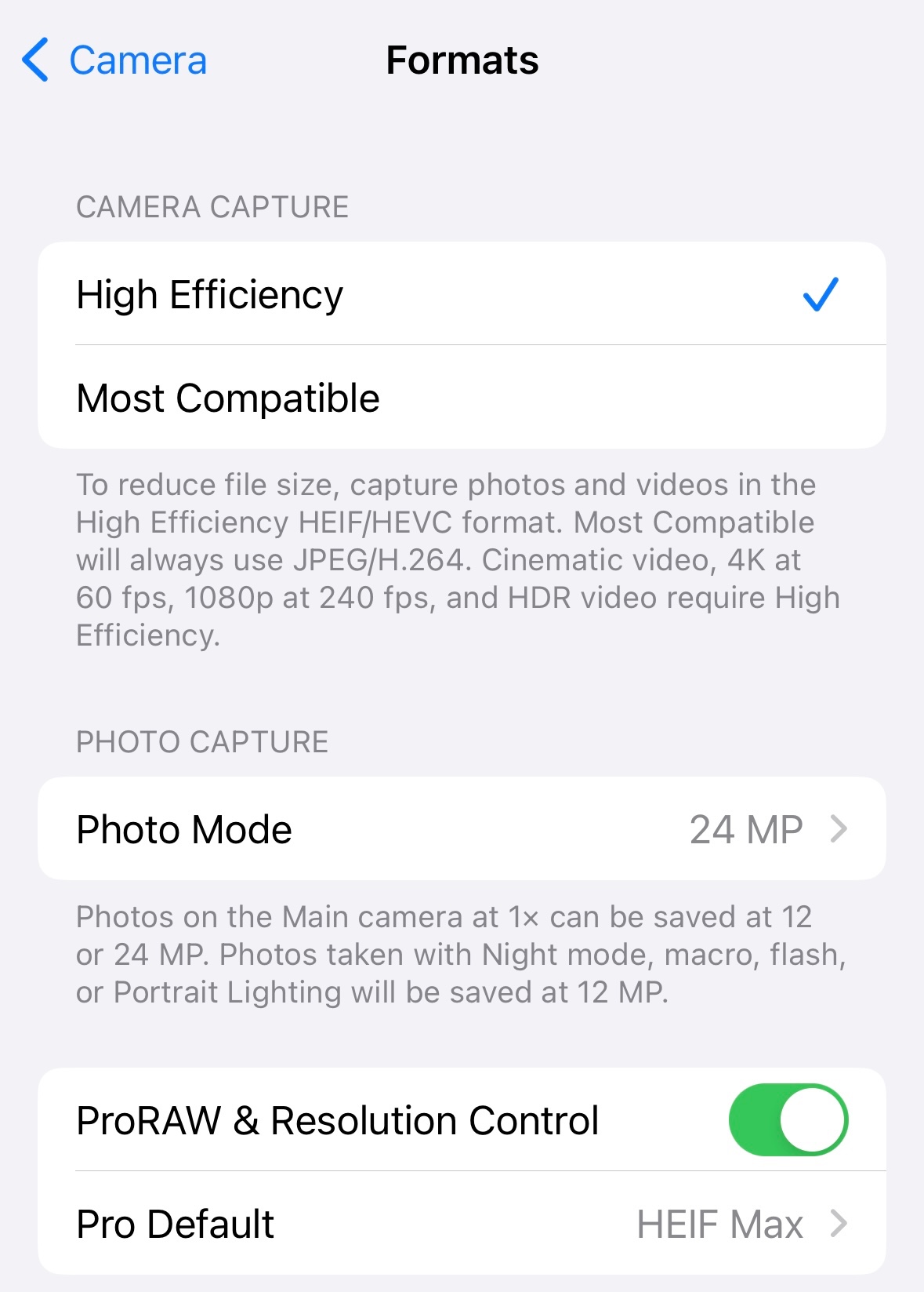 Why is this? I ignorantly assumed when using the HEIF Max settings pictured below the phone would always produce a 48MP photo. If that’s not the case what are the factors at play that output at 24MP versus a 48MP?