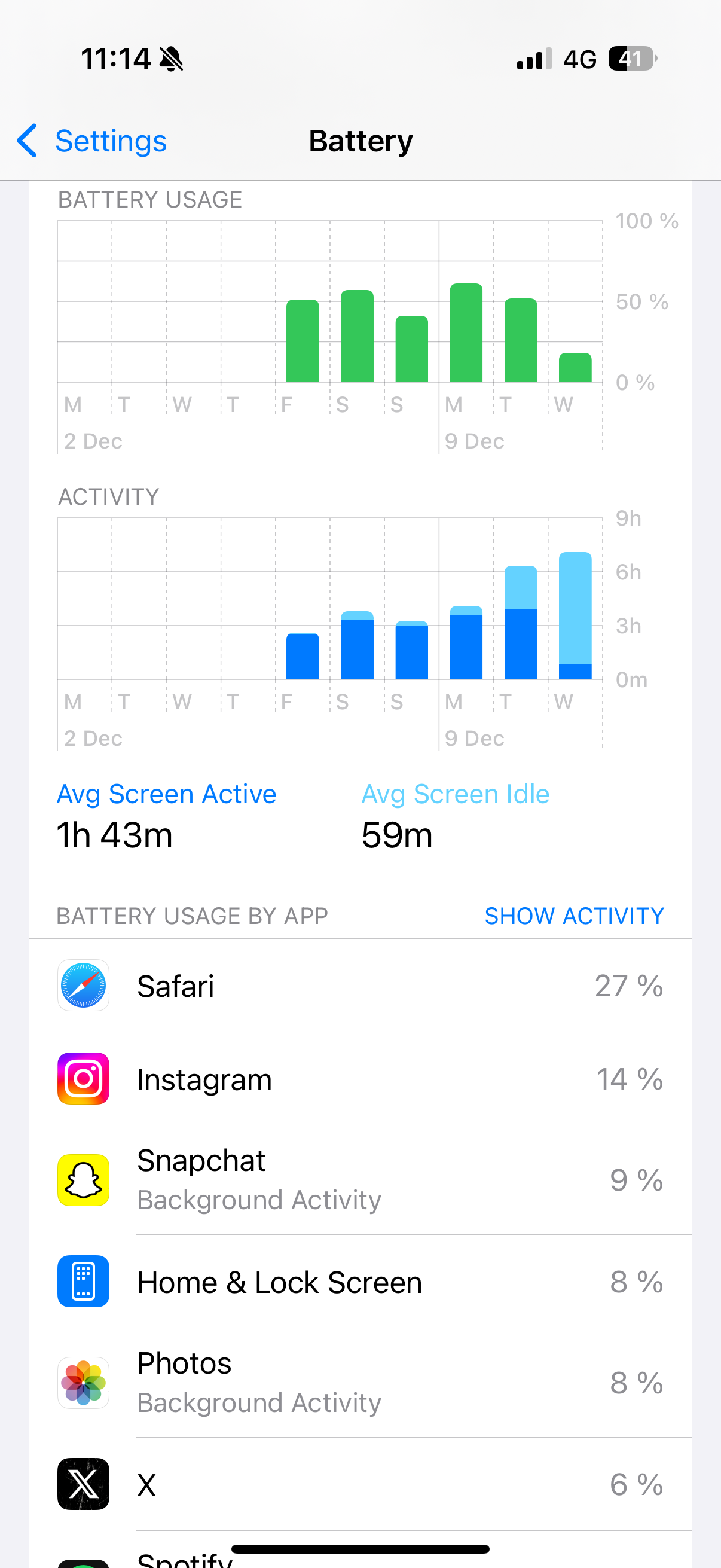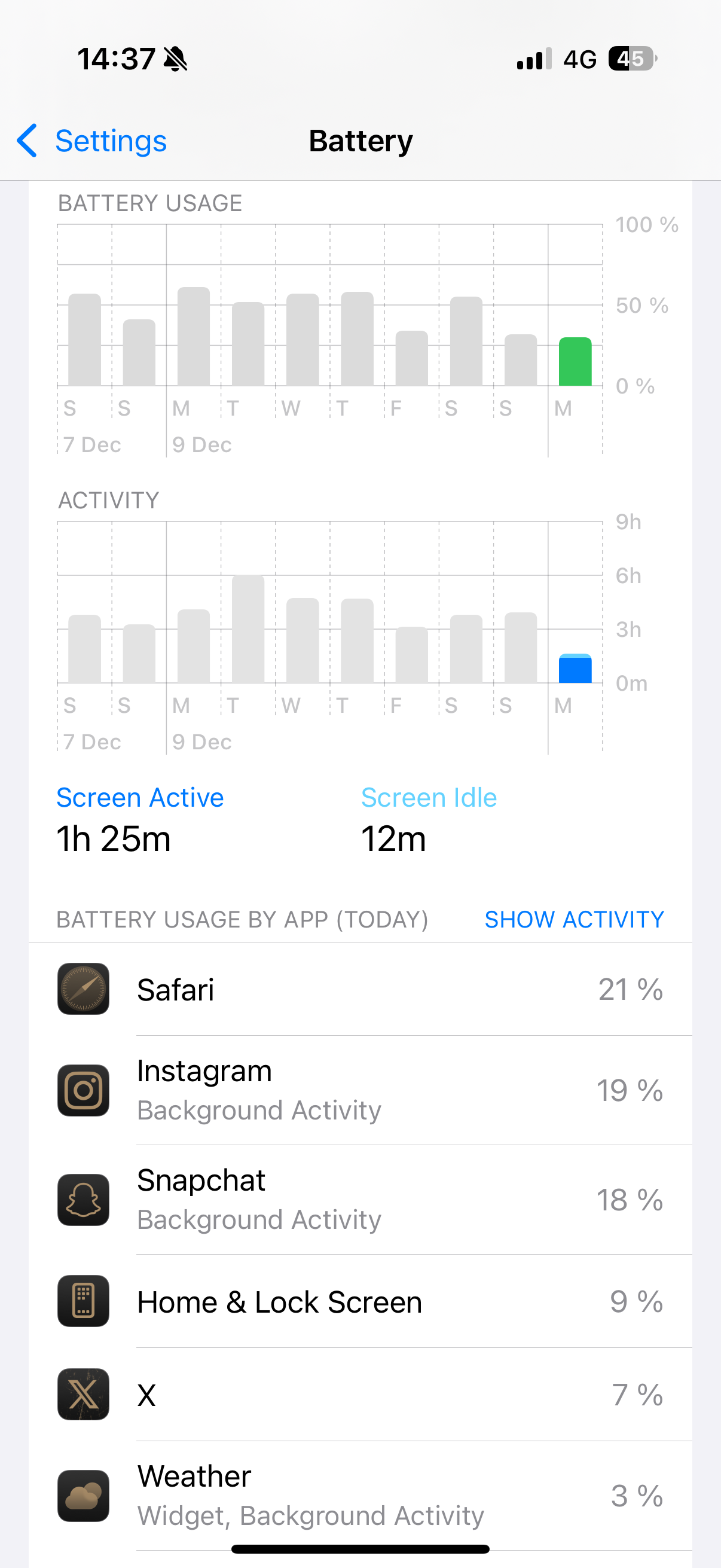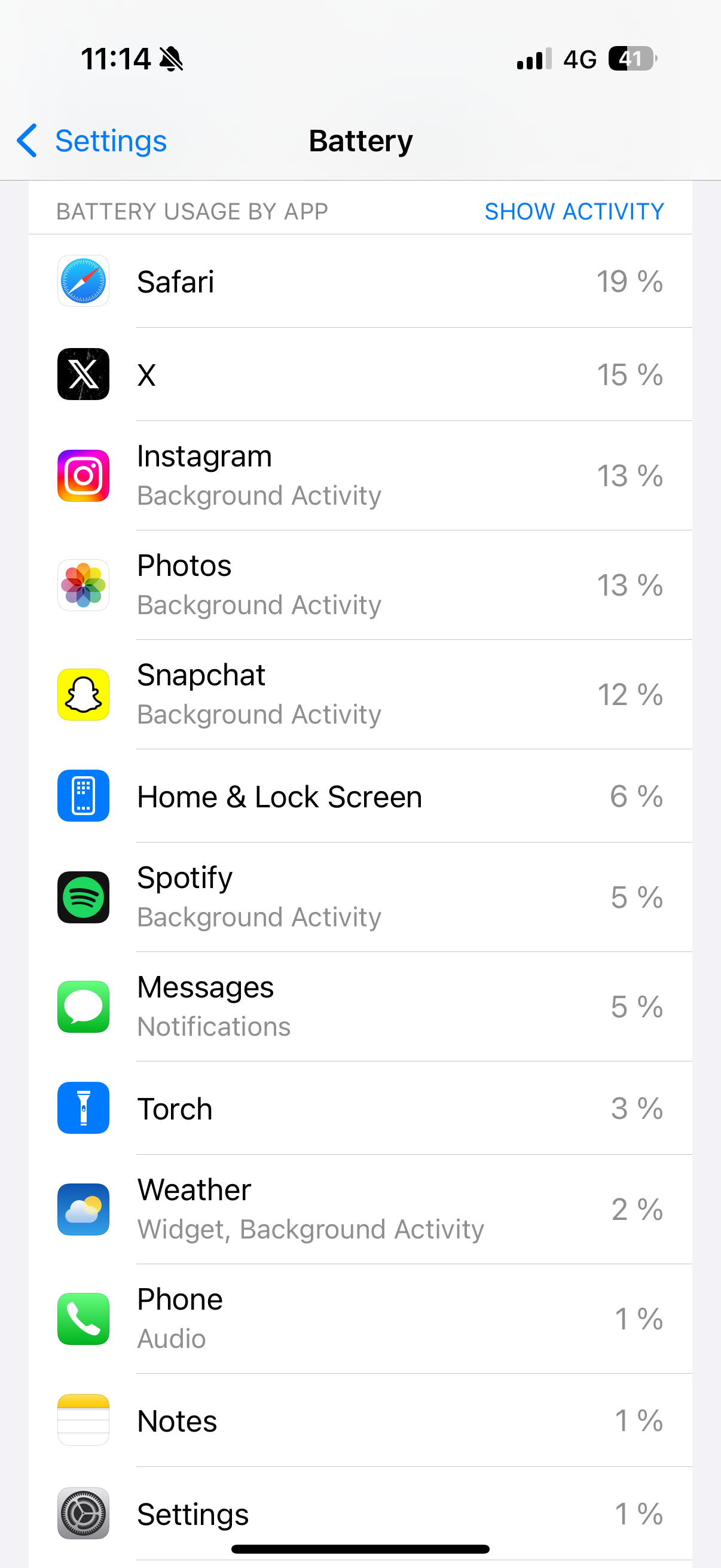• Check Activity & Battery Usage by App: Go to Settings > Battery to see which apps are using the most battery. Adjust settings for apps consuming excess power.