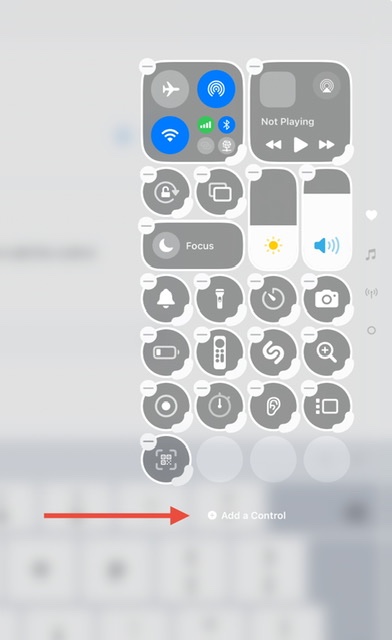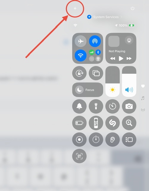 Swipe downwards from the top-right corner of the screen to expose the Control Centre - then tap the "+" icon: