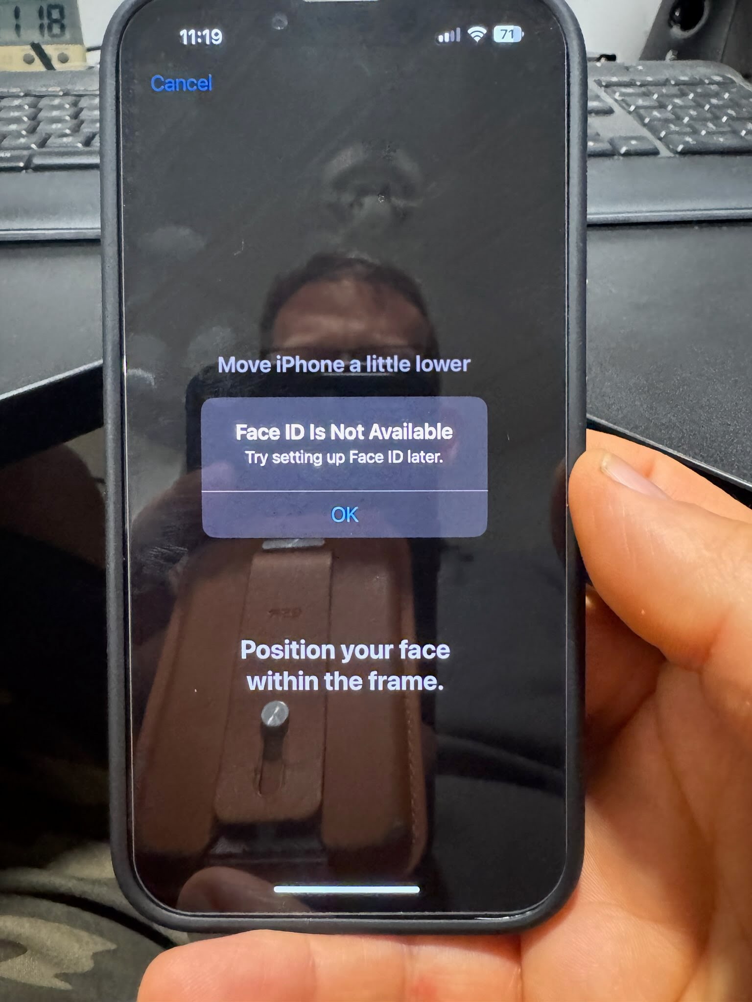 I installed an aftermarket screen on my sons iPhone 13 and it works but I'm not able to use face id (States its not availalbe) and true tone is missing (assuming its because the screen is not original). I'm on ios 18 and the system notices the screen has been replaced. I go to Settings, About, Parts & service History and it has a message about Display with an option to Restart & Finish Repair but it gives an error "unable to configure".