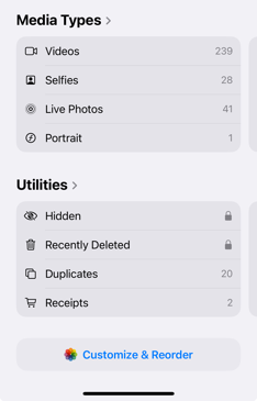 In "Customize & Reorder," by the way, I can choose to change the order of the sections or eliminate them from the list.