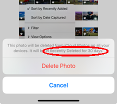 If I hit Delete Photo, then the picture is removed from my Library and can be seen for 30 Days in the Recently Deleted View. The Recently Deleted View appears at the bottom of the the main window