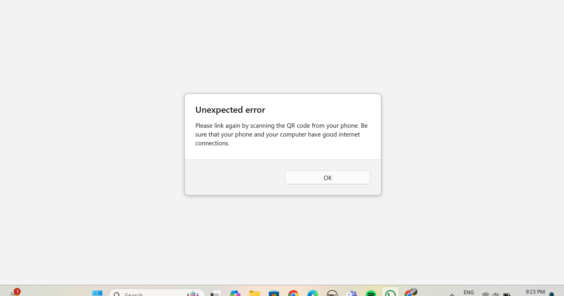 WhatsApp Desktop App not linking