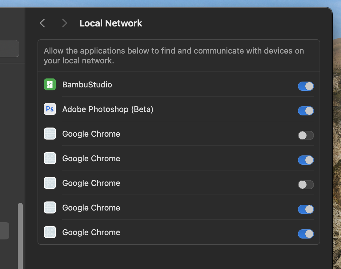 yup, that's exactly the result i get too no matter what i try. even deep cleaned all of chrome via terminal, full new install from scratch, result still the same (and a gazillion chromes in local network toggled for access). extremely frustrating.