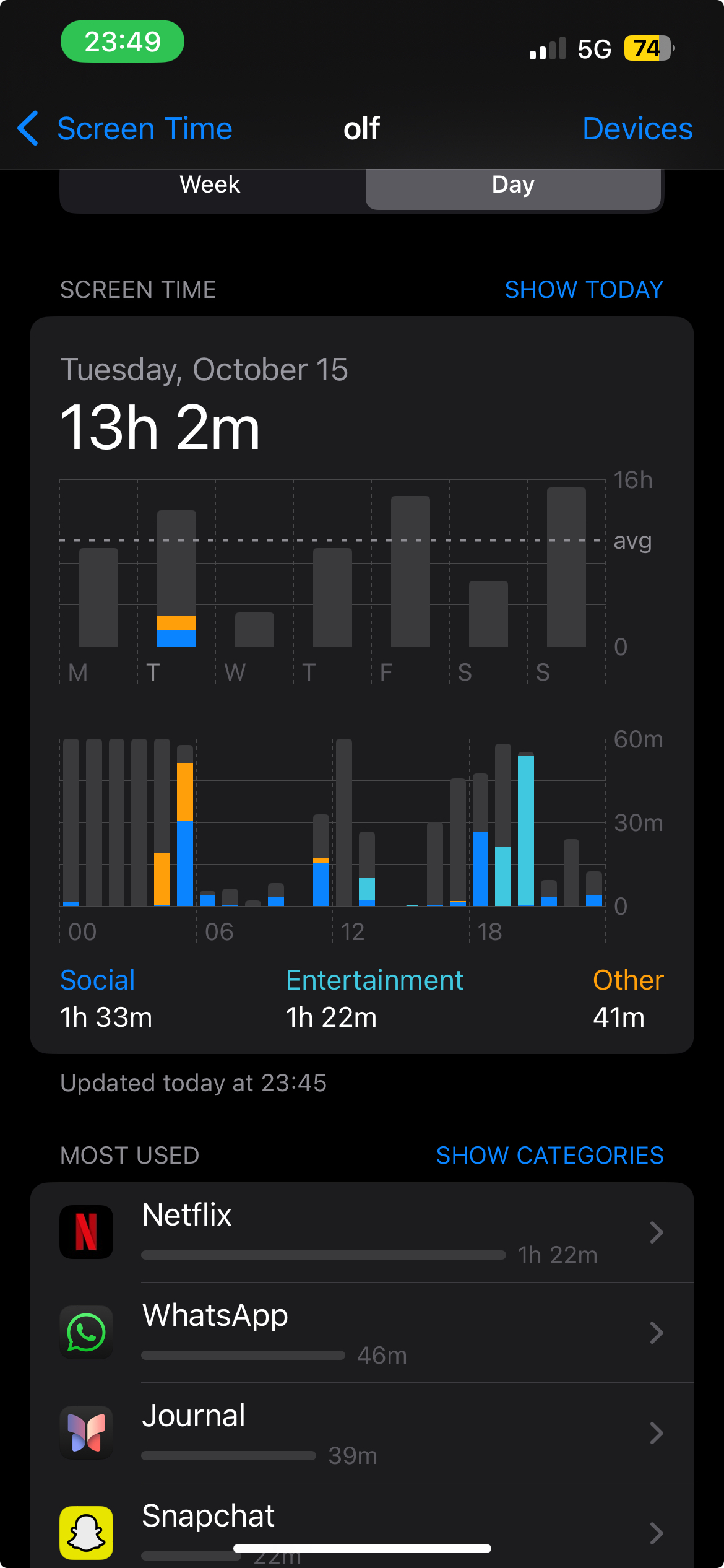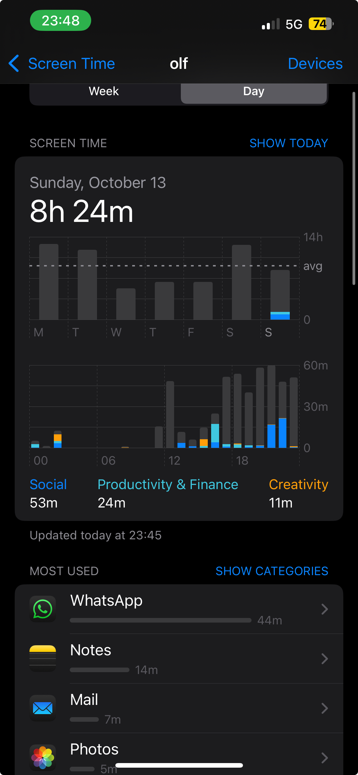 PS: I checked and these screen time reports are only for my iPhone, I did not select "All Devices".