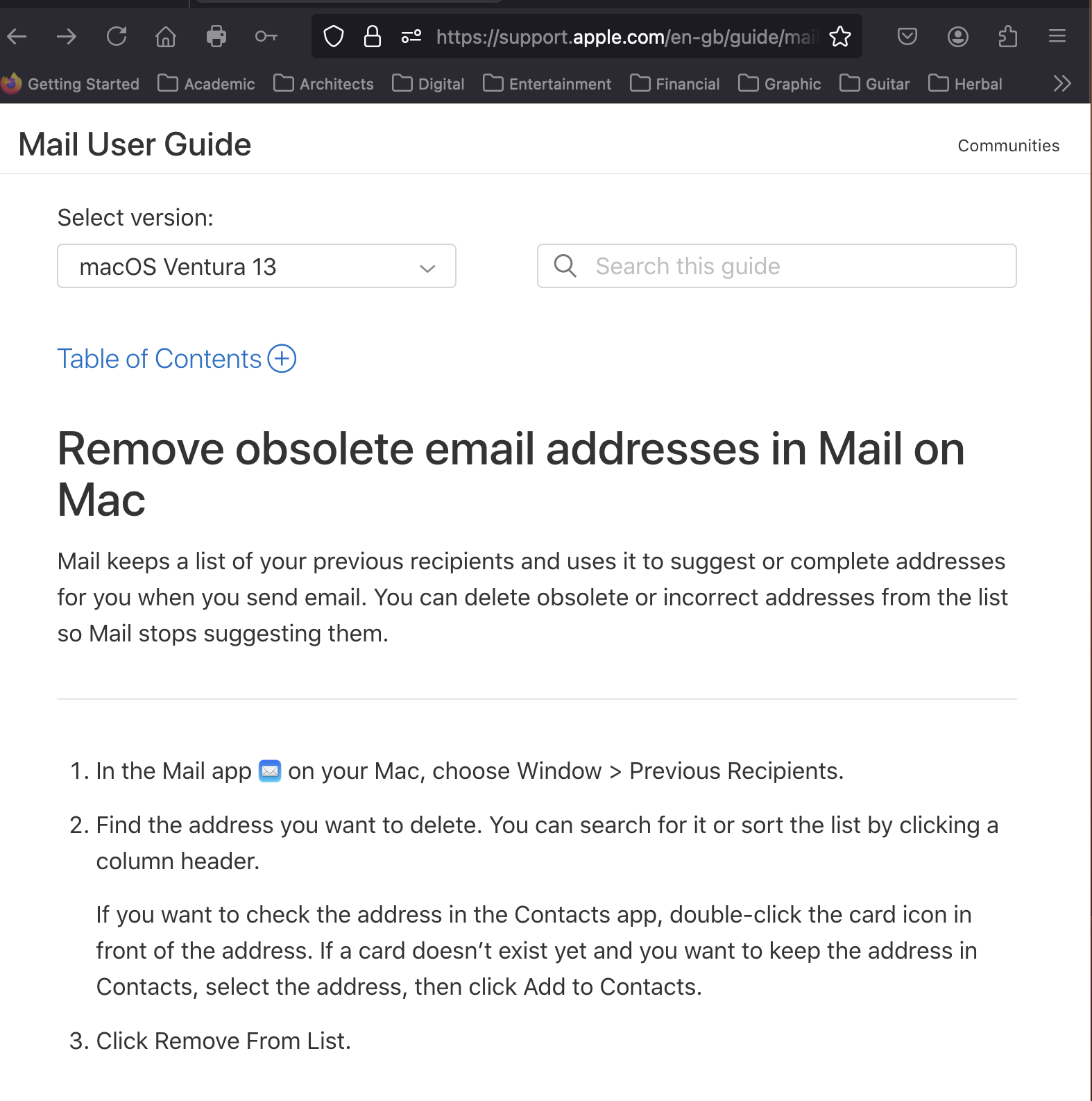 How do I delete old email Addresses in Ventura Mail/icloud?