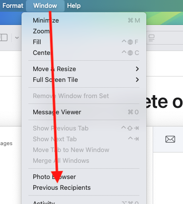Item 1. says “choose Window (which window?) >Previous Recipients. (It is nowhere to be found!)